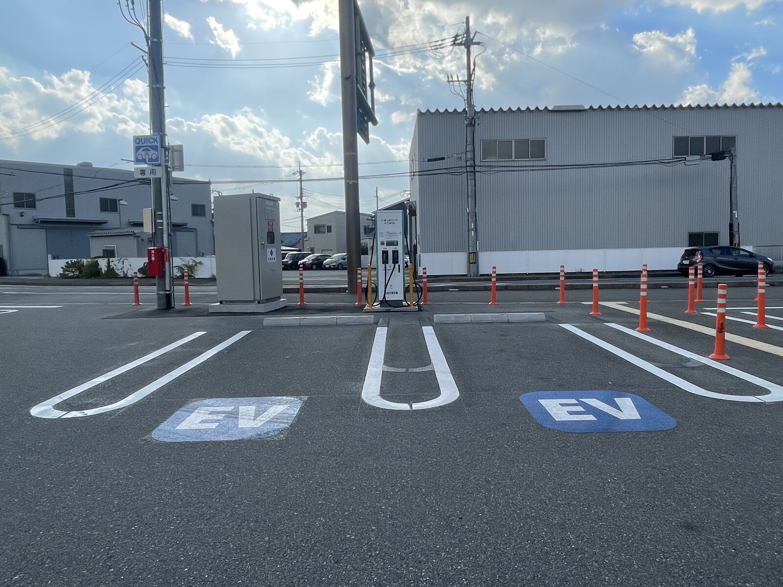 こちらの駐車場に新しく電気自動車の充電ステーションができていました。