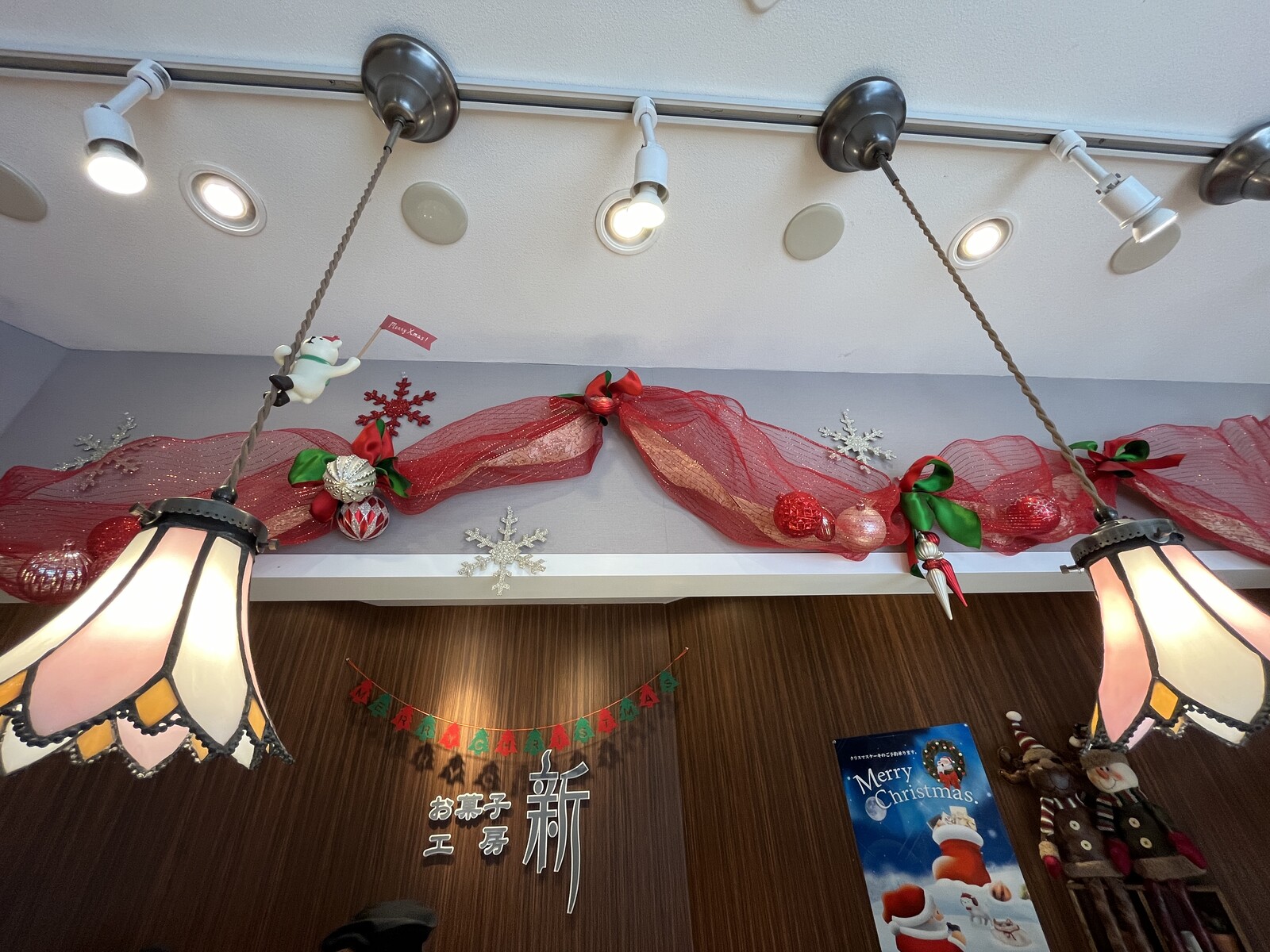 店内はクリスマスムードがあって、お店の方に聞くと11月終わり頃から準備をしていたとのこと。