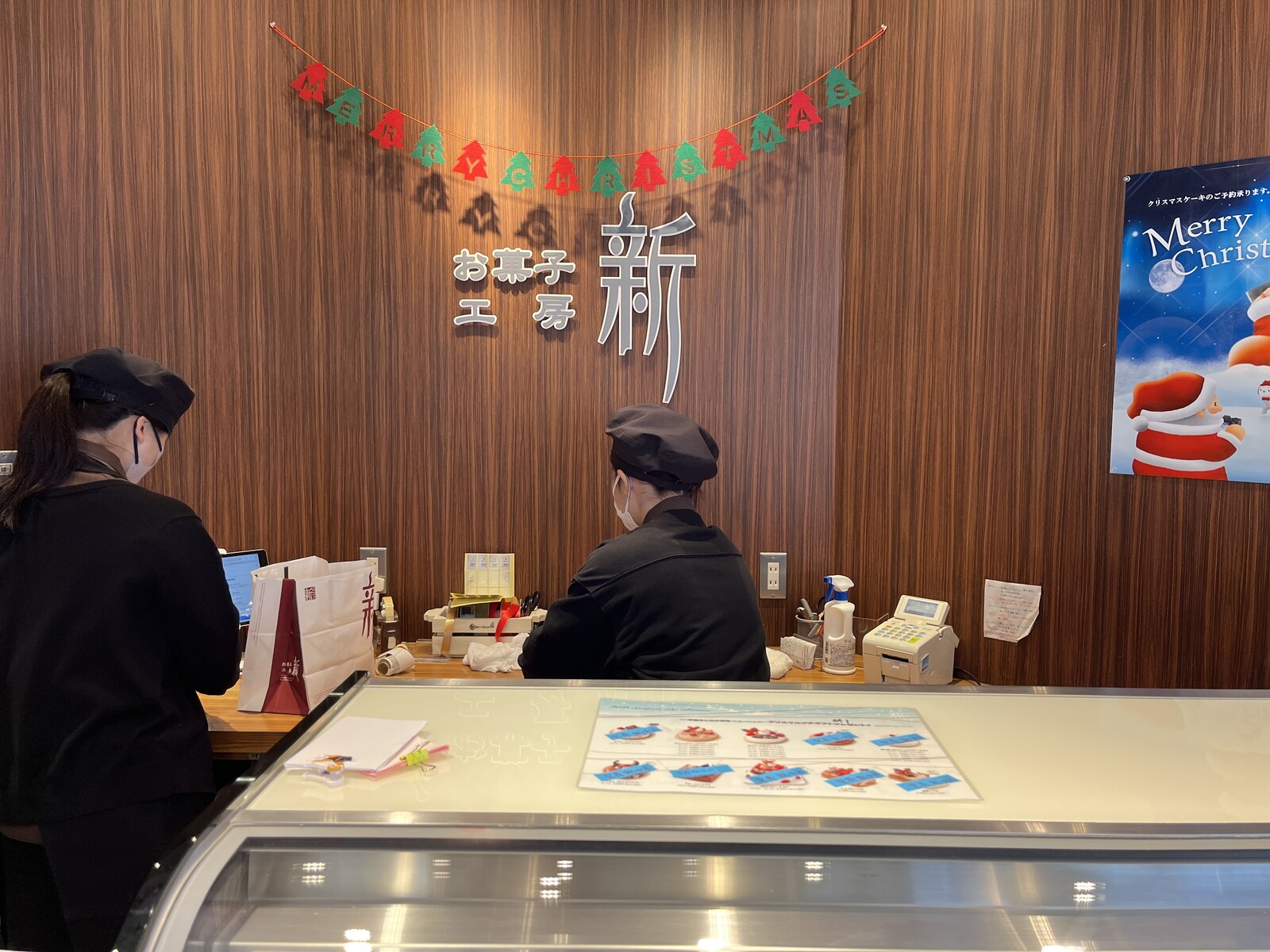 お菓子工房新さんはバウムクーヘンも有名なスイーツや洋菓子のお店で、今回はクリスマスケーキを予約していたのでちょっとどんなのかなというのをご紹介させていただきます。