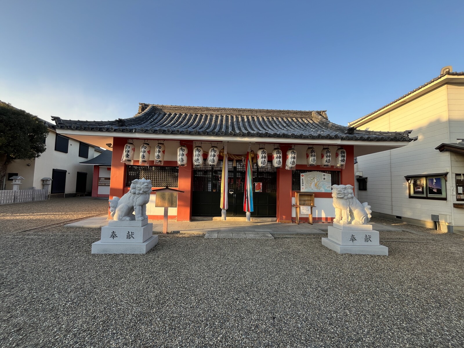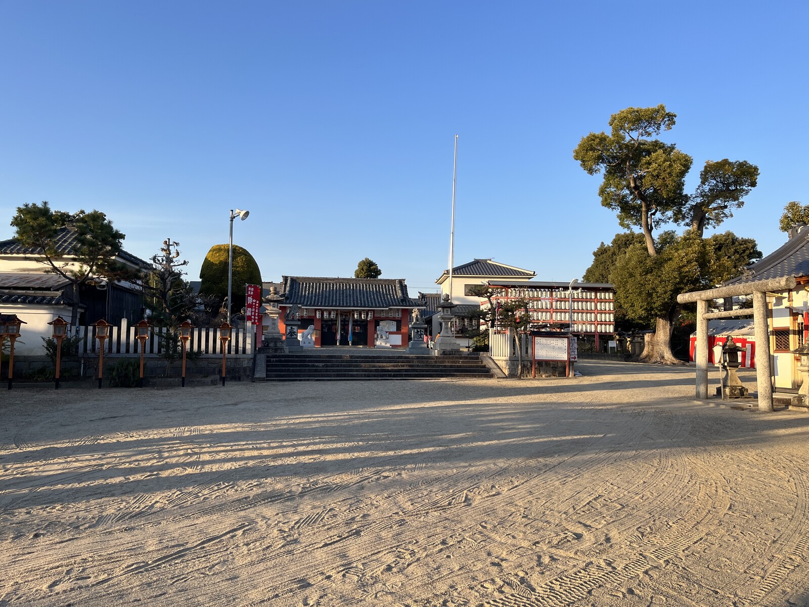 神社の周囲はこんな感じで初詣の赤色の旗もたくさん立っていました。