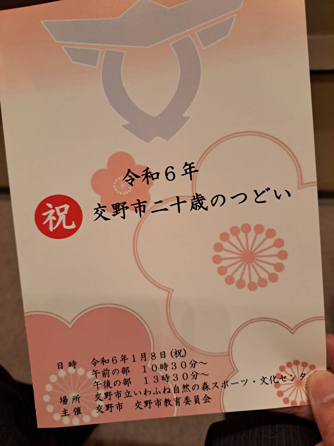 1月8日(月・祝)、交野市私市9丁目にある星の里いわふねで開催された二十歳のつどい(成人式)。