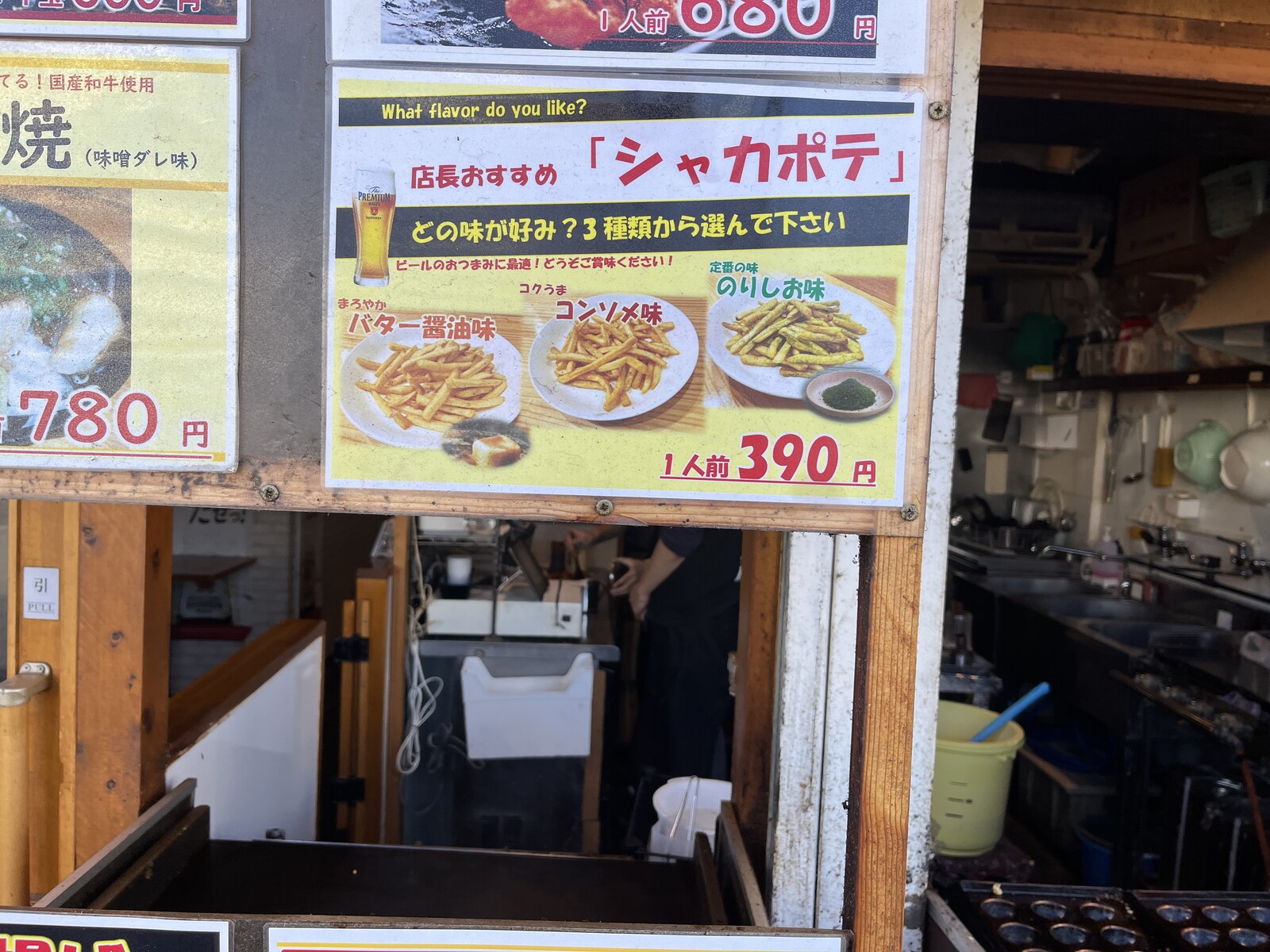 シャカポテは1人前390円でバター醤油、コンソメ、のりしおの3種類がありました。