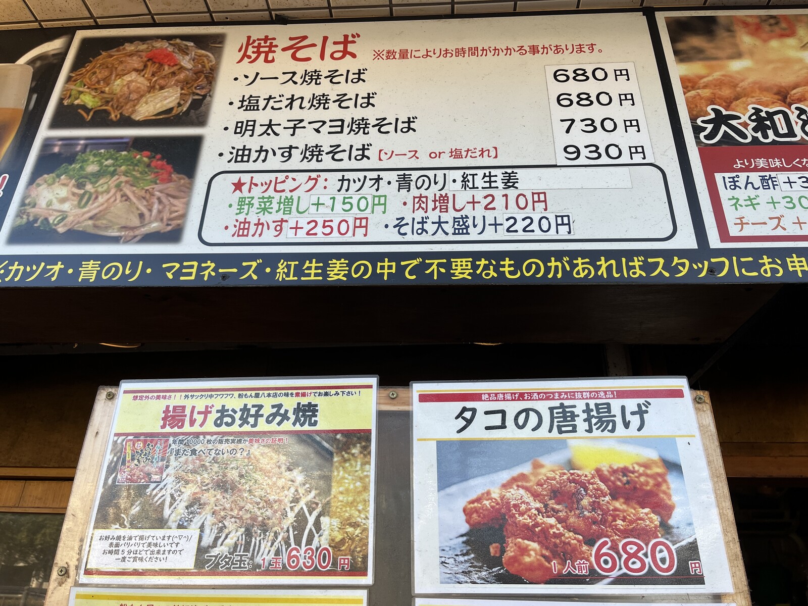 たこ焼きができあがる間に他のメニューもたくさんあったので看板を眺めてみることに。