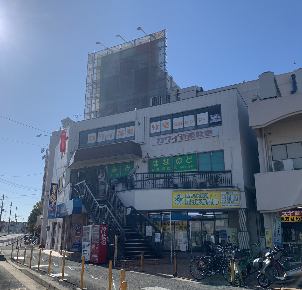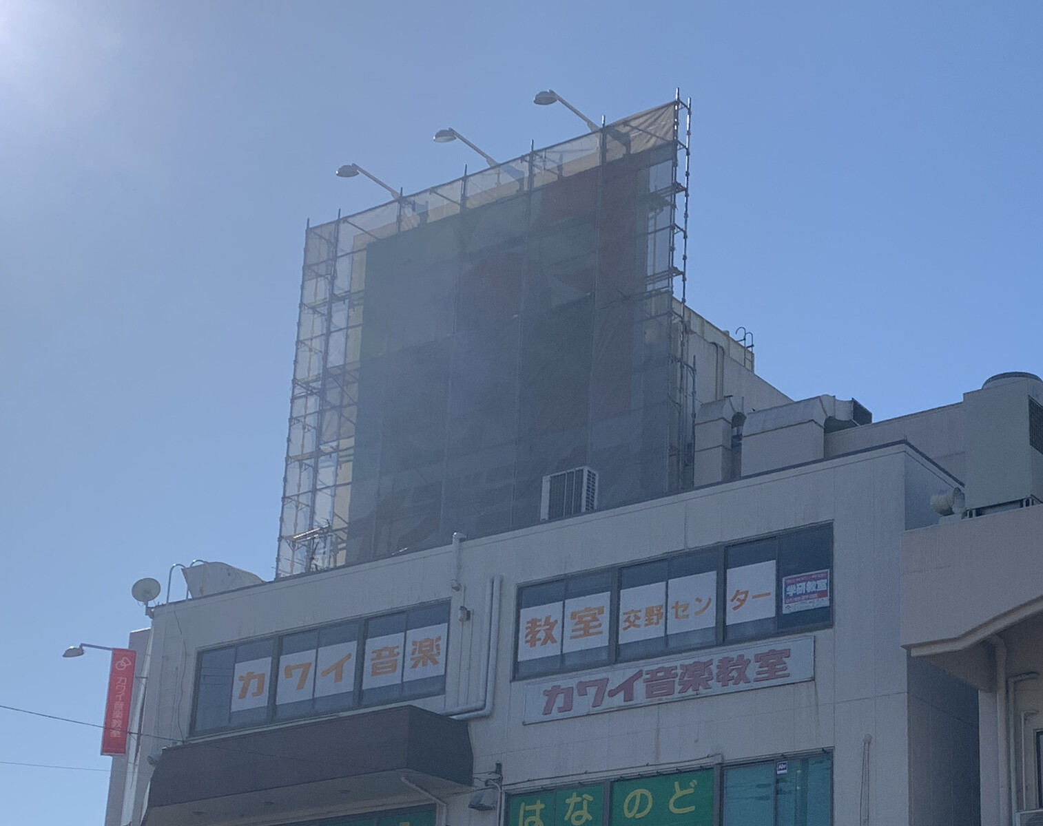 14日で閉店したイズミヤ交野店の看板が工事中で見えなくなってる