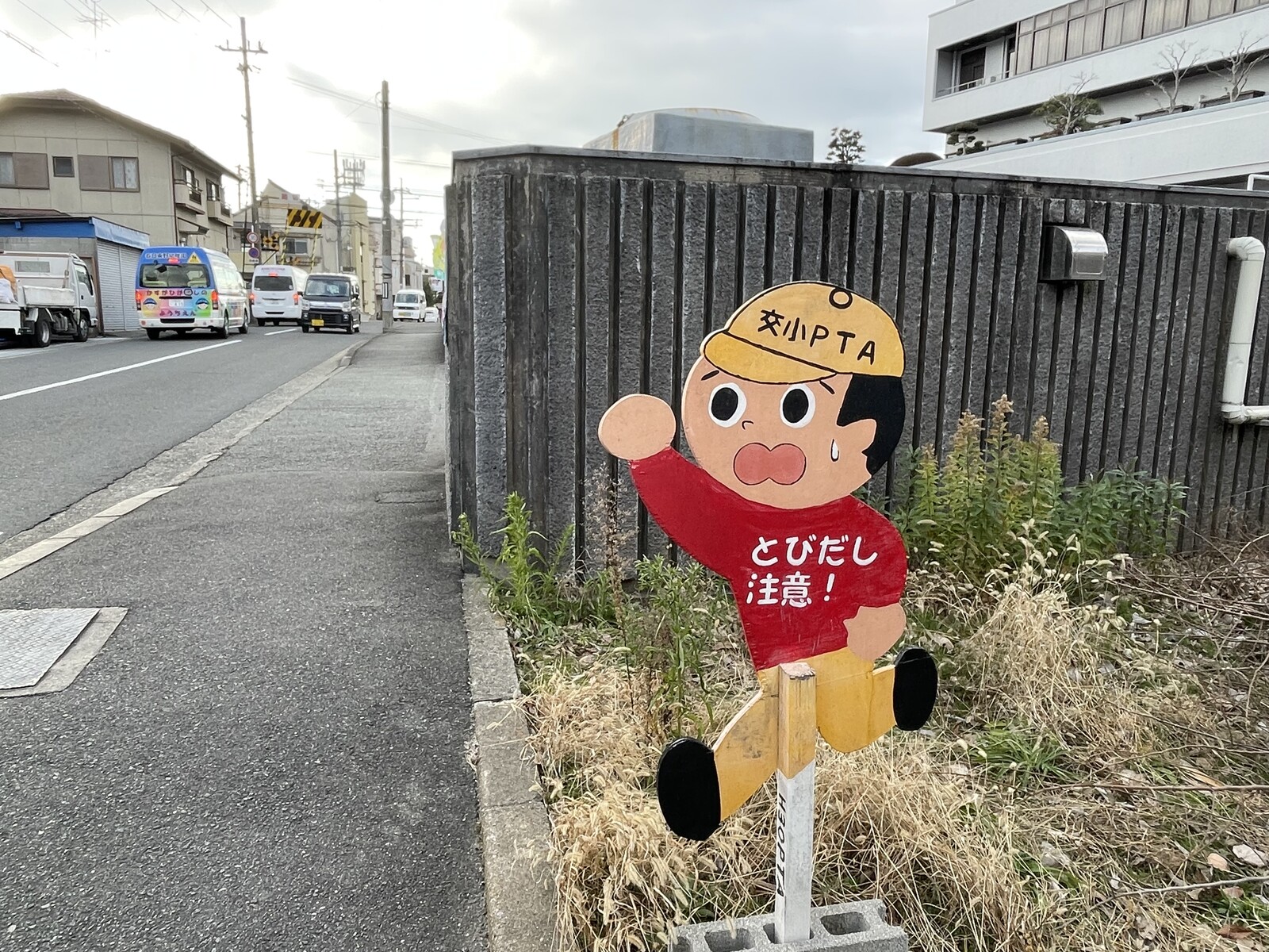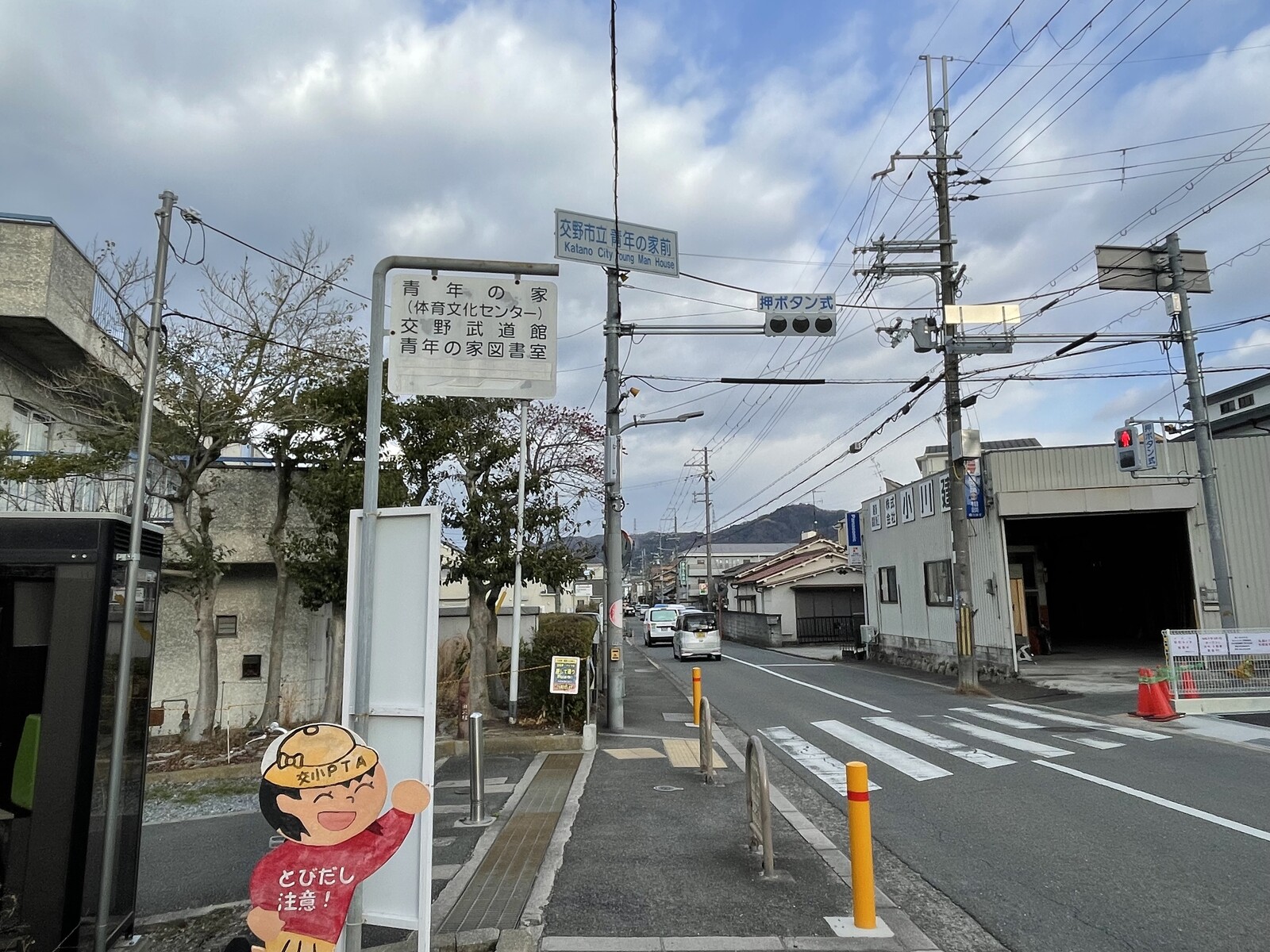 今回は、交野市立青年の家の前にいてる飛び出し坊やを発見しました。