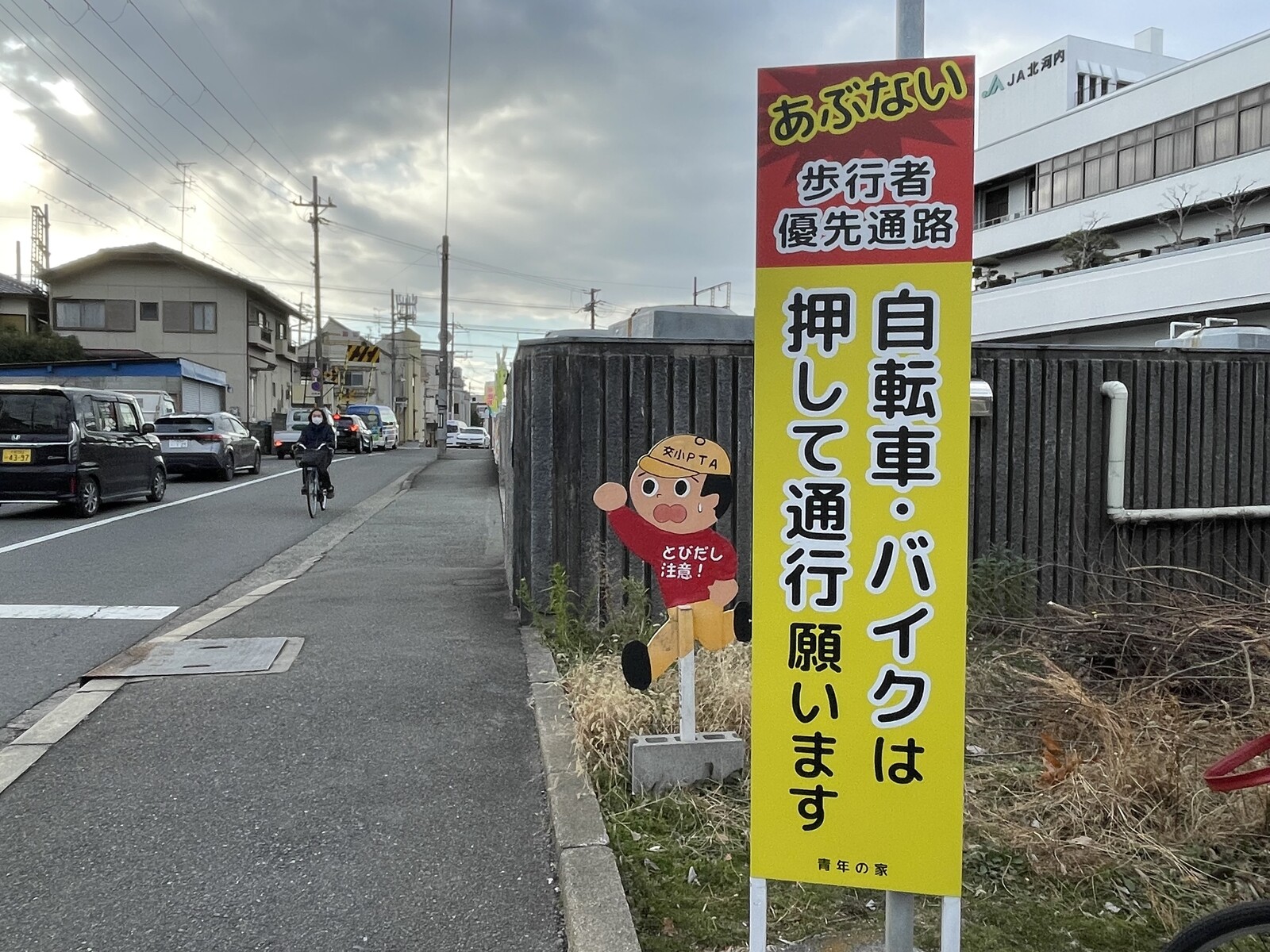 青年の家前の飛び出し坊やは男の子と女の子が表裏一体!