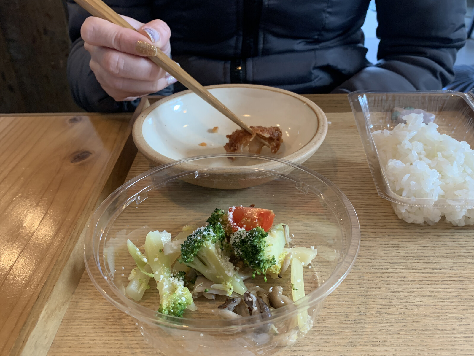 倉治の「笑う暮らしに花が咲く」は、お惣菜を店内でいただくこともできる!笑顔の花が思わず咲いちゃう。