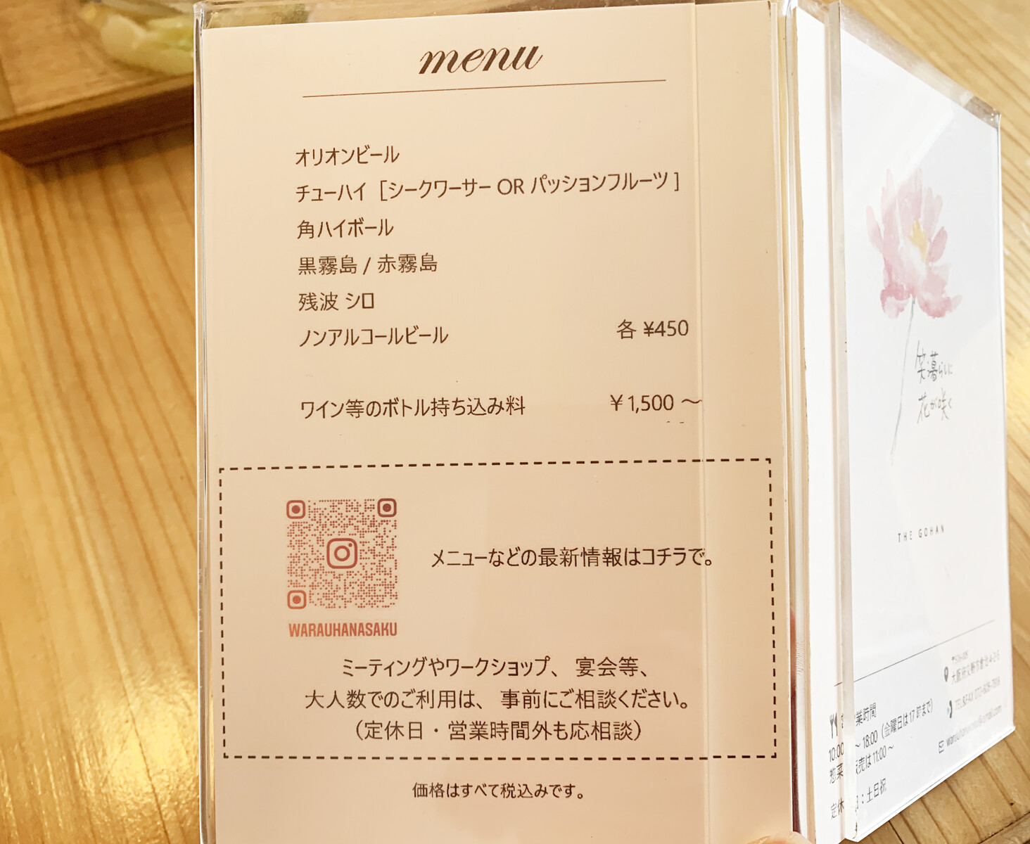 店主さんは沖縄料理のお店にお勤めされていたこともあるそうで、メニューには沖縄料理も。