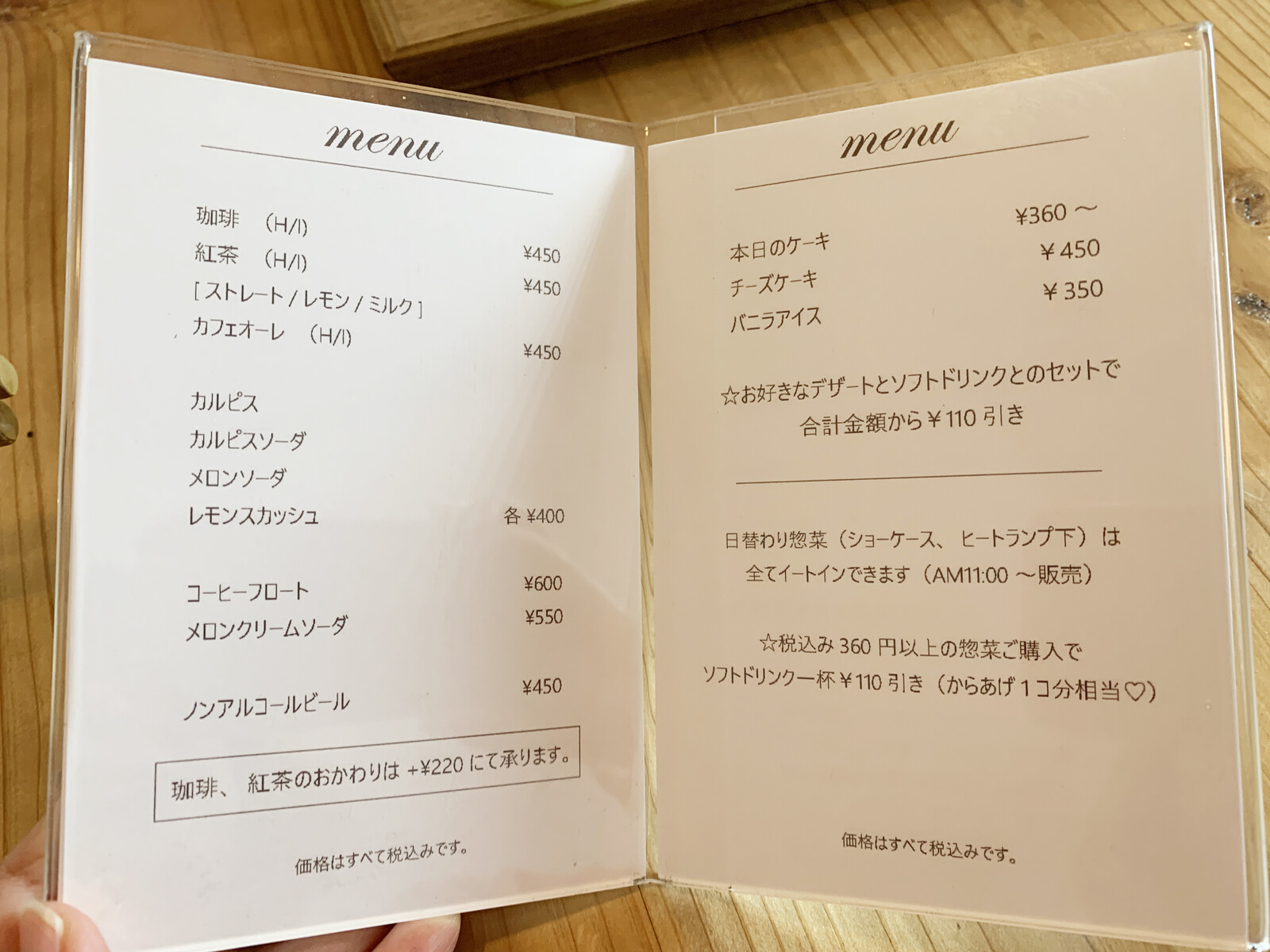 お惣菜も店内でいただくことができるとのことで、さっそく入店〜