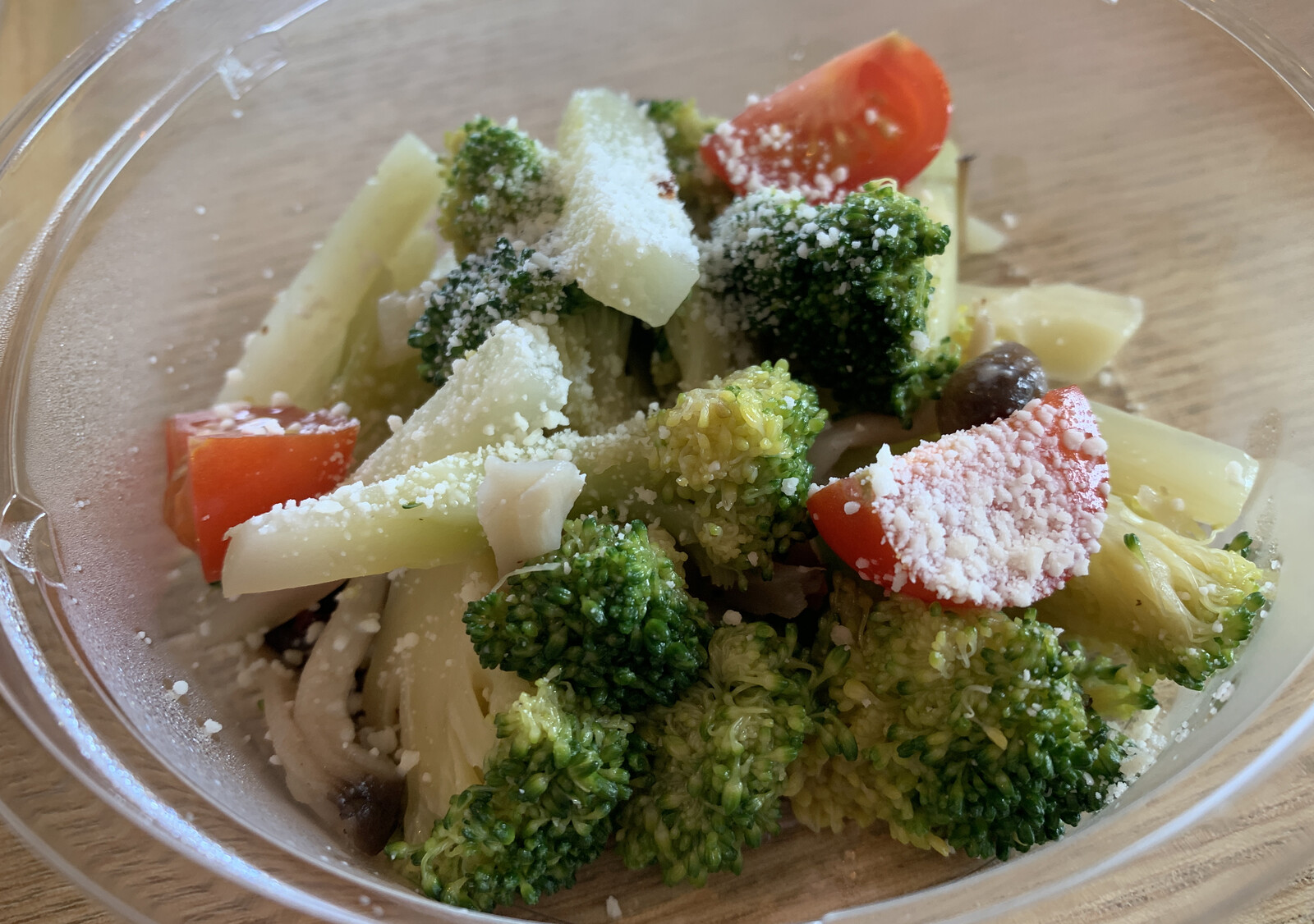 おゆう@交野タイムズは、白ご飯、唐揚げ、ブロッコリーときのこのイタリアン、という組み合わせでした。