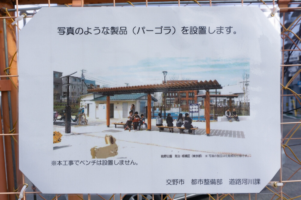 仮囲いの部分にパーゴラ(屋根)、その手前に木が植樹されるようです。