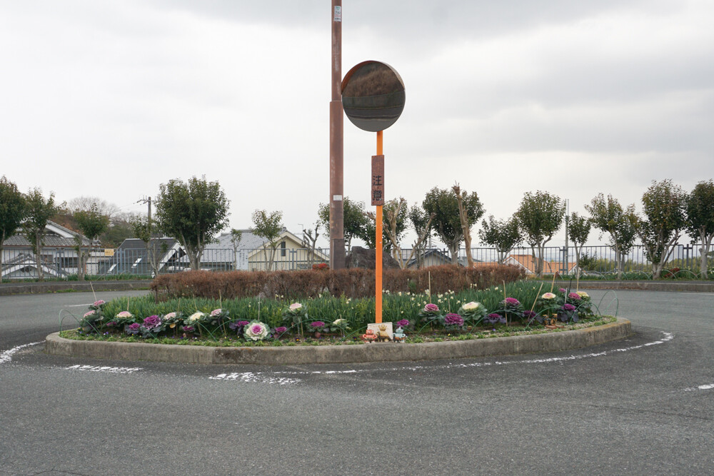 スイセンの花とハボタンを同時に見ることができるのも、南星台バス停の大きな特徴の1つと言えそうです。