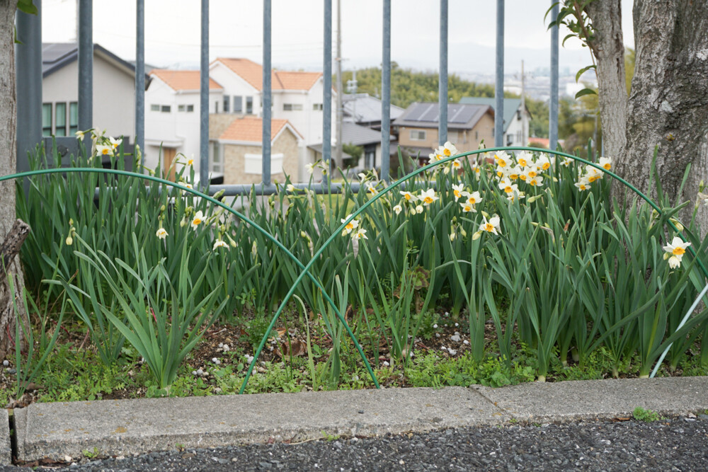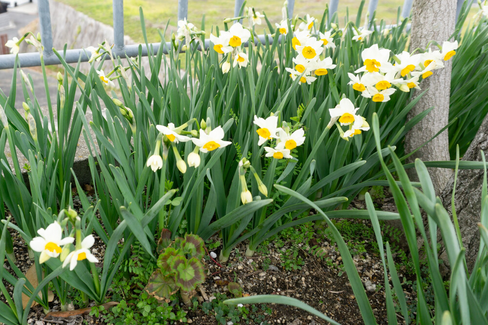 スイセンの花が咲いていたのは、ロータリーの歩道の外側です。