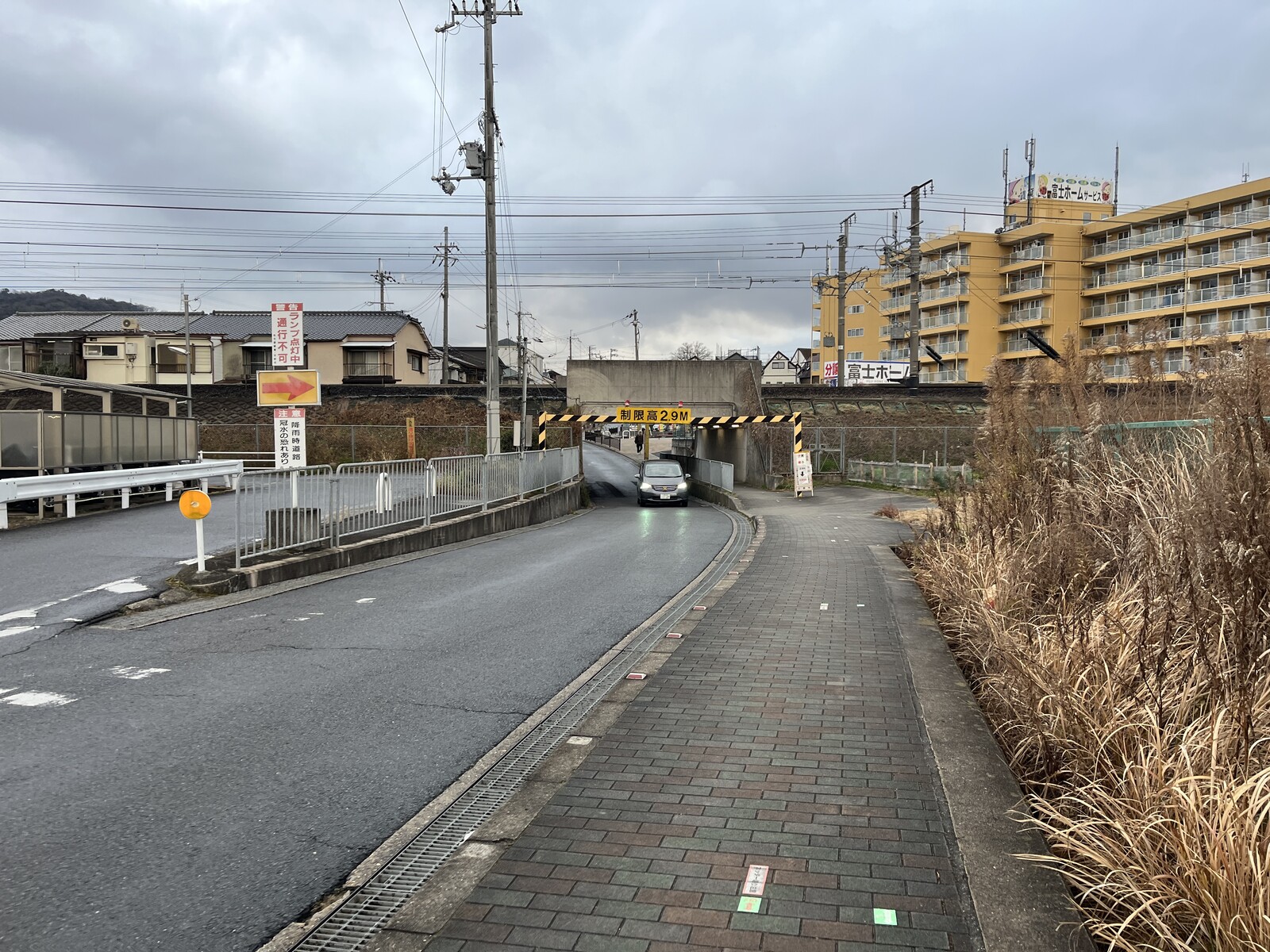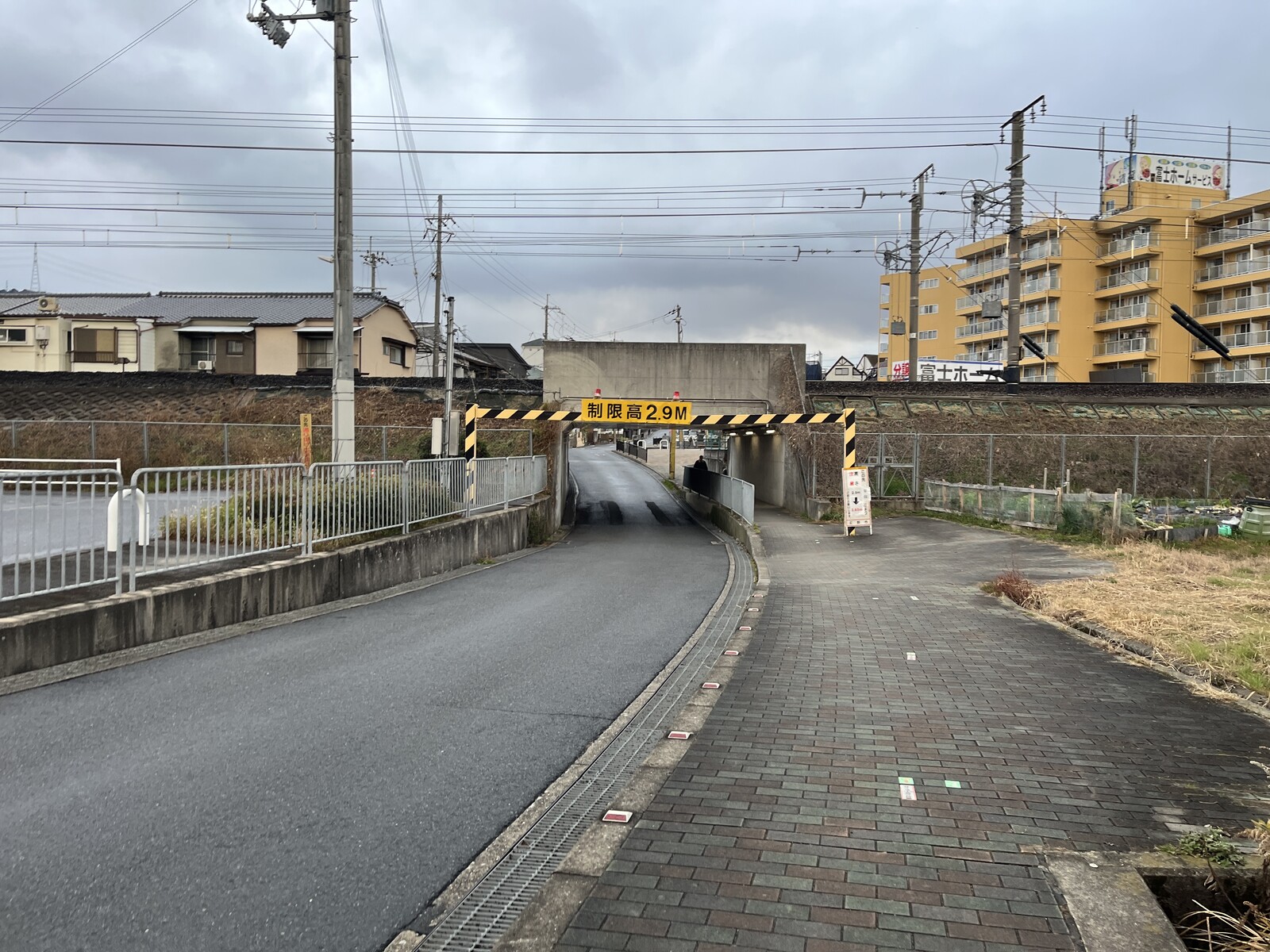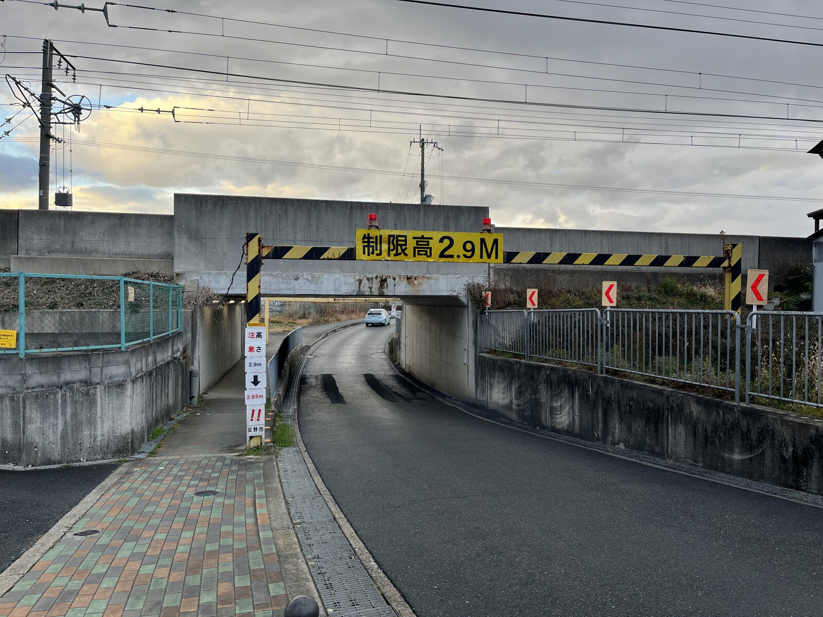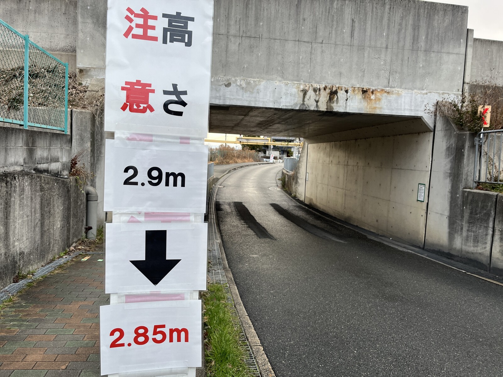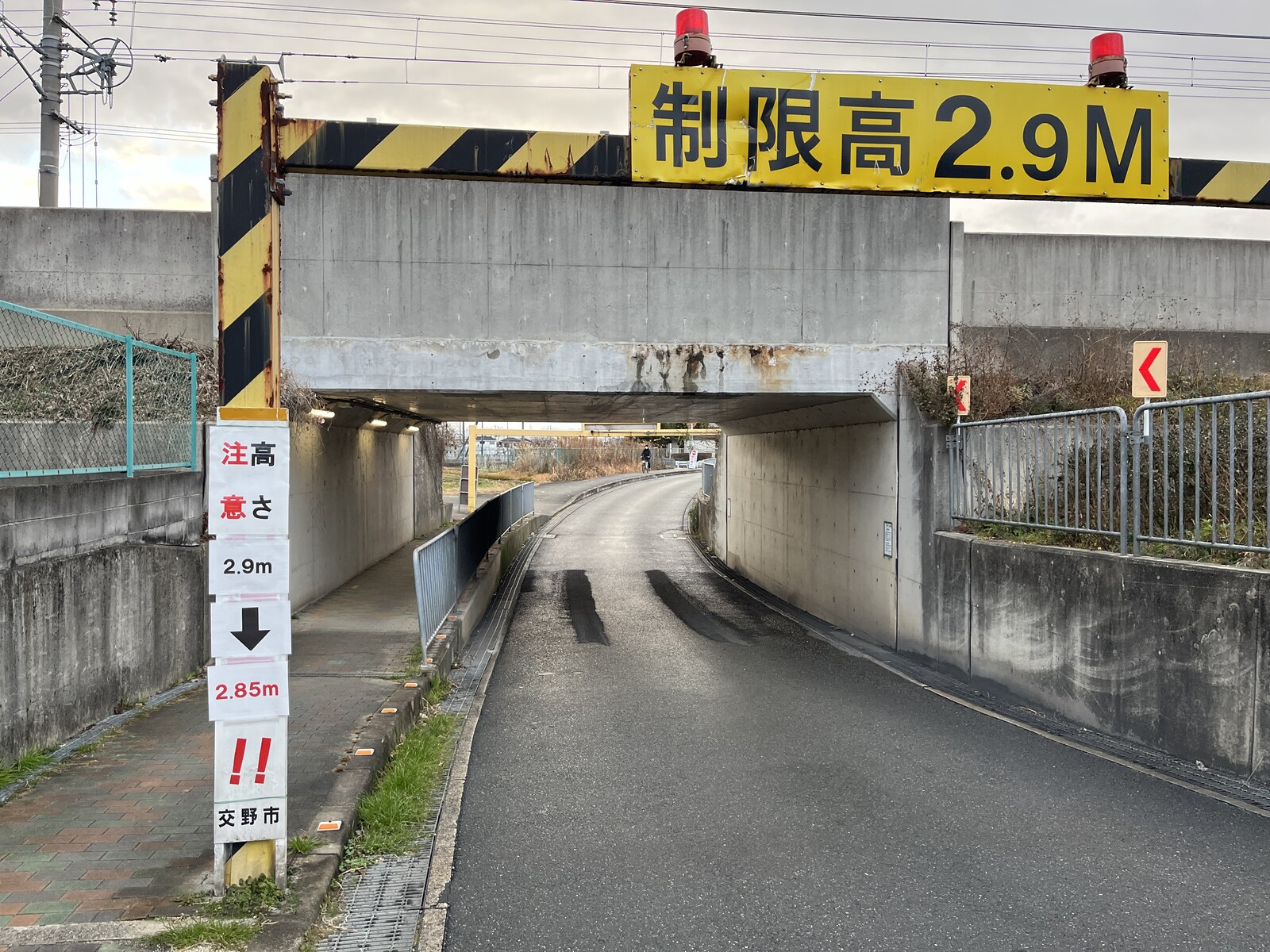JR学研都市線をくぐる道路の高さは2.9mではなく2.85m。4中やゆうゆうセンター近くの道路。