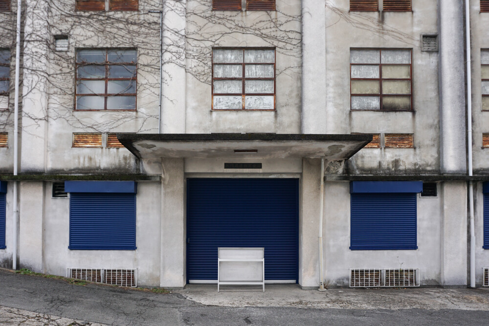 シャッターに「技」「人」「米」「水」の大きな漢字が書かれていました。