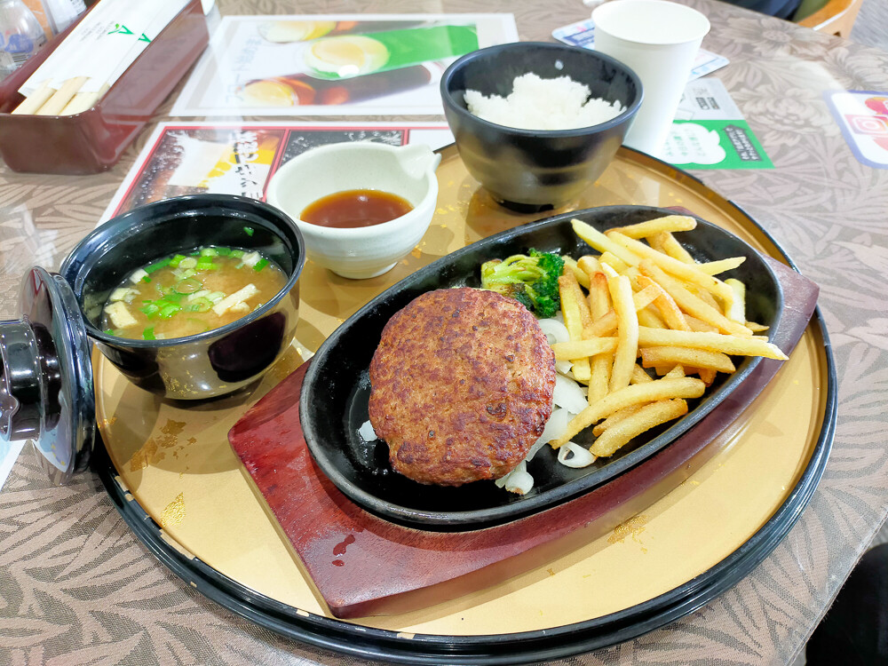 運ばれてきた「鉄板ハンバーグ」は、ジュージューという美味しそうな音を立てていて、熱々の熱気が伝わってきました。