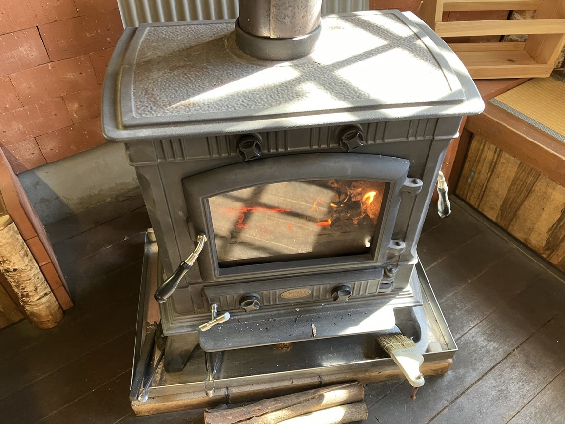 日本でも寒い地域だと、薪ストーブが活躍しているという話は聞きますが、大阪で見たのは初めてかもしれません。
