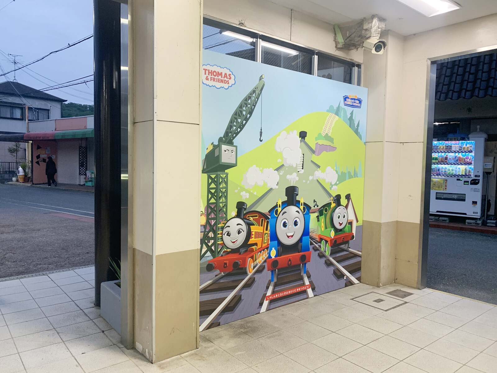 枚方市駅では交野線ホームのエレベーターのところが、がっつりトーマスになっていました。