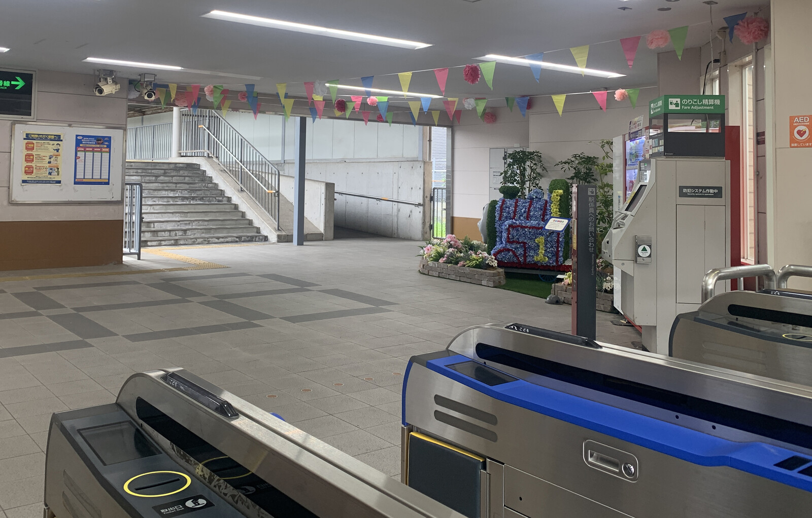 また、改札出て右手のほううすぐのところには、写真撮影にぴったりの装飾もほどこされていました。