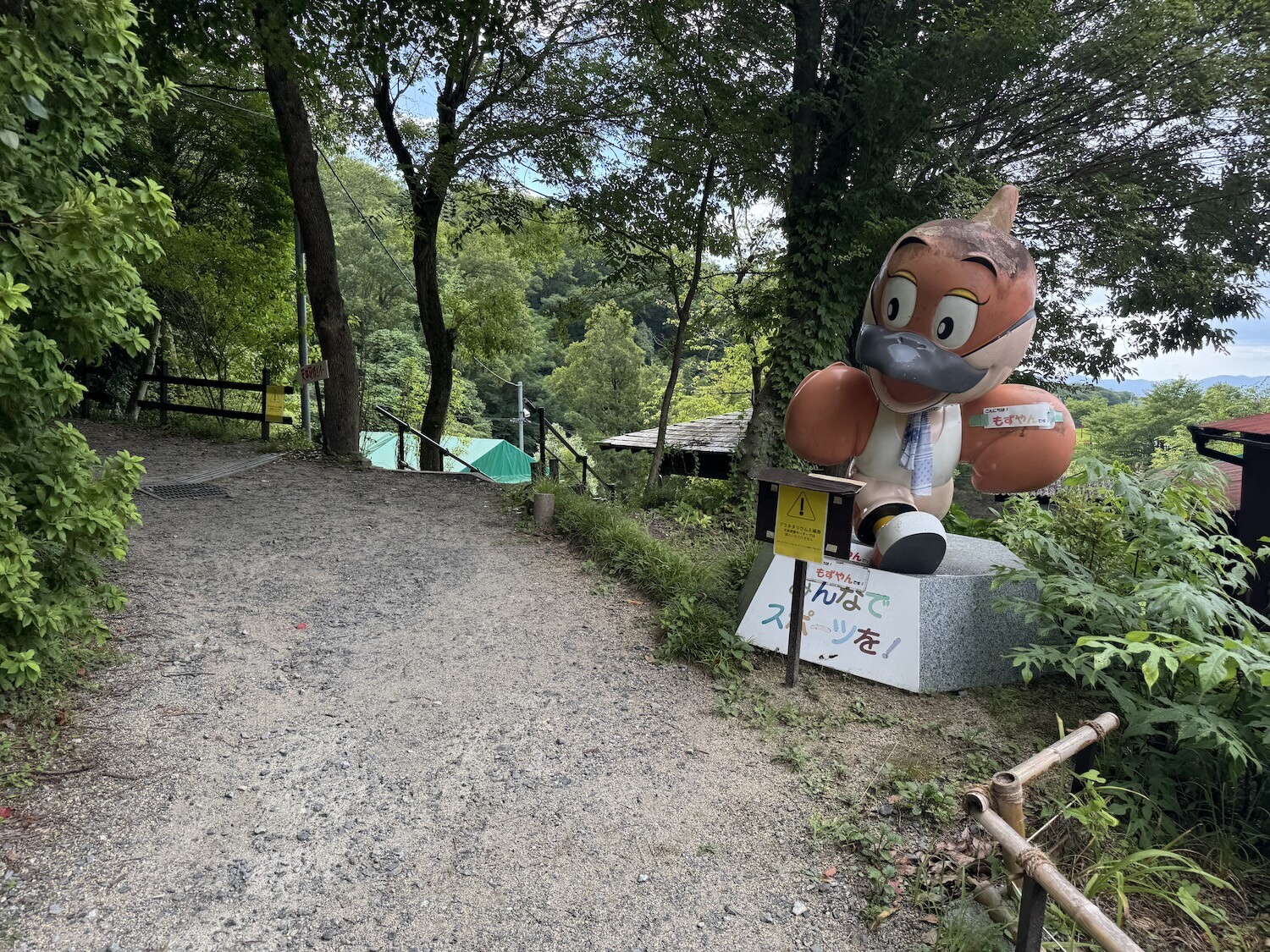2)そのまままっすぐ行くと、山側へ登る道があります。モッピーがおるところの道です。毎年、本気でお化け達は頑張ってくるので、けっこう怖いと思います。