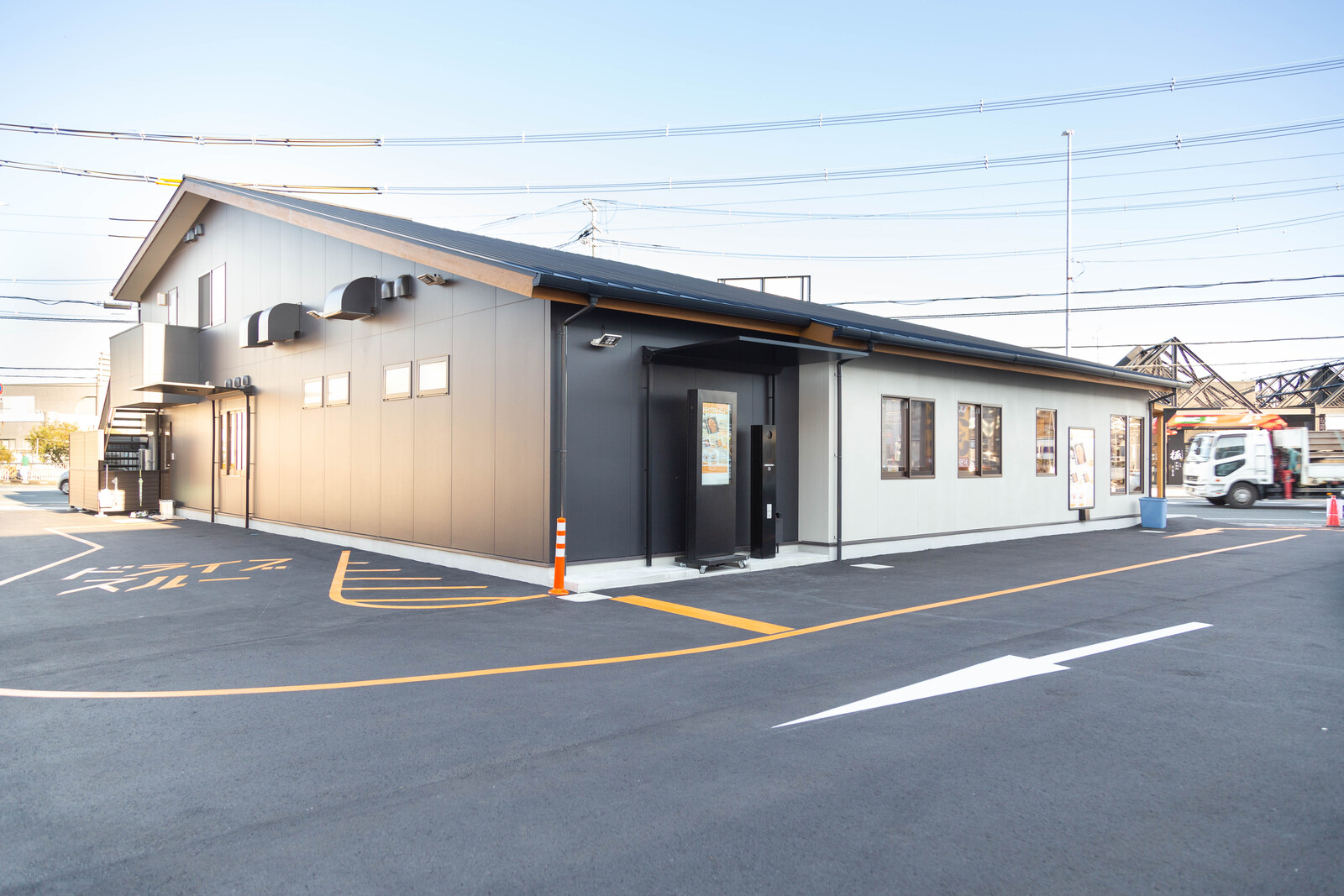 新店舗が打ち出すのは「コロナ禍でも存続できる新たな飲食店」。ドライブスルー・モバイルオーダー・配膳ロボットなど、新たな販売手段やDXを取り入れた。