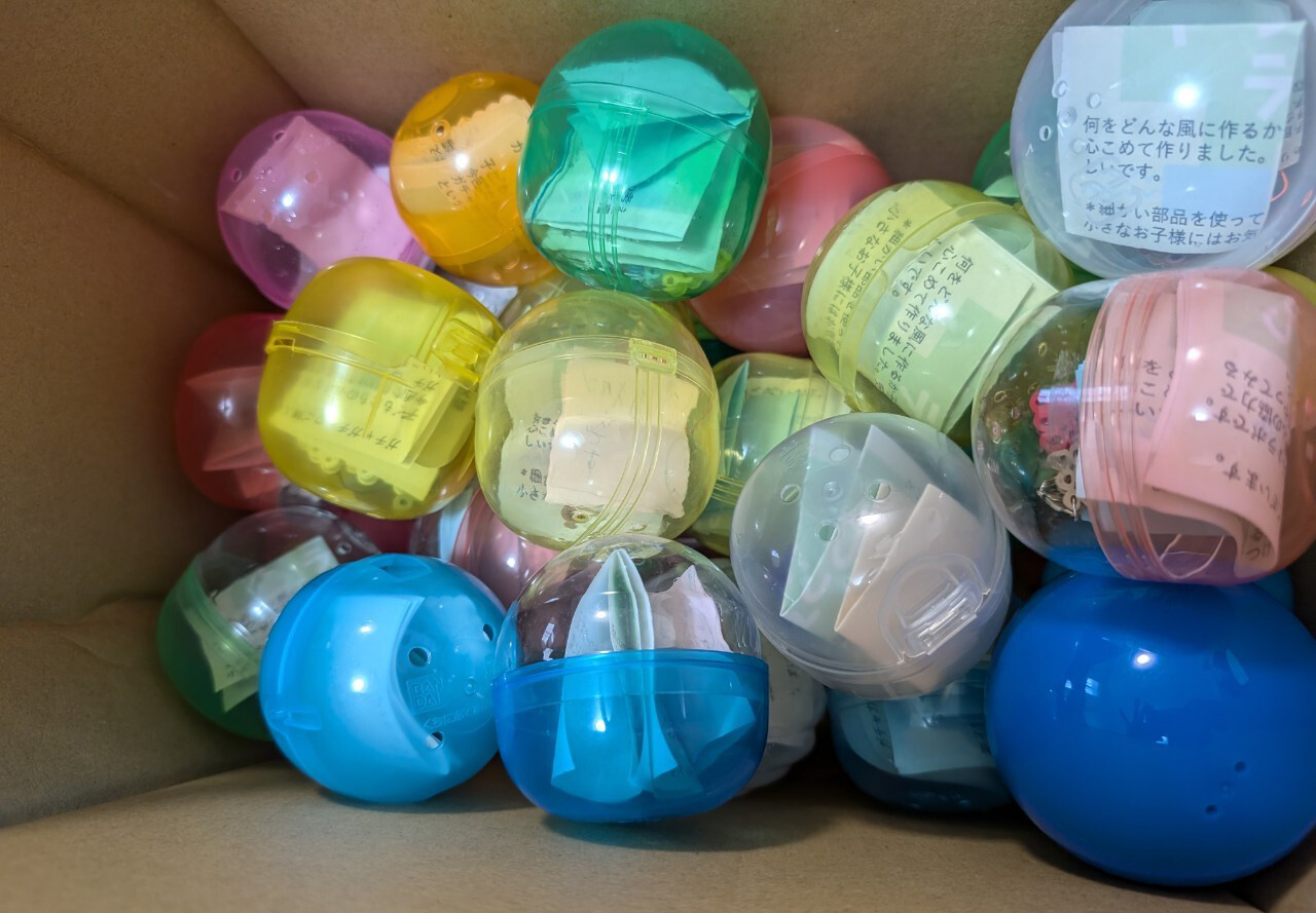 カプセルは、買うと経費がかかっちゃうので、ママさんがリサイクルのカプセルをスーパーなどにもらいに行ってくれたそうです。