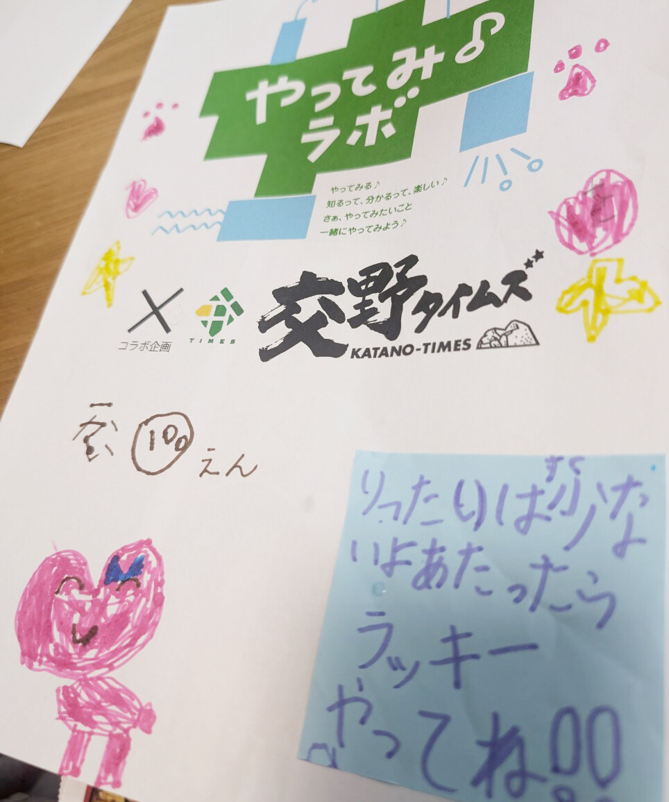 『やってみ♪ラボ』の子どもたちと交野タイムズのコラボガチャ。大人気であっという間に完売!