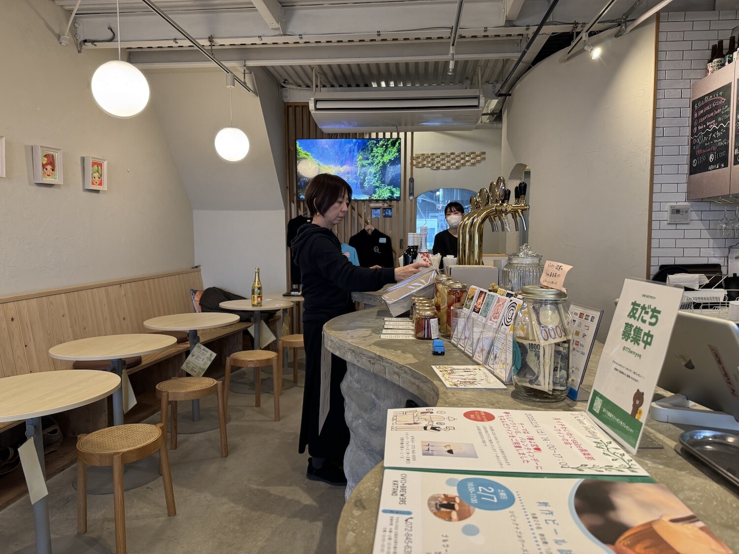 店内カウンターが印象的で、「これはみんなでDIYしてつくりました」とのこと。