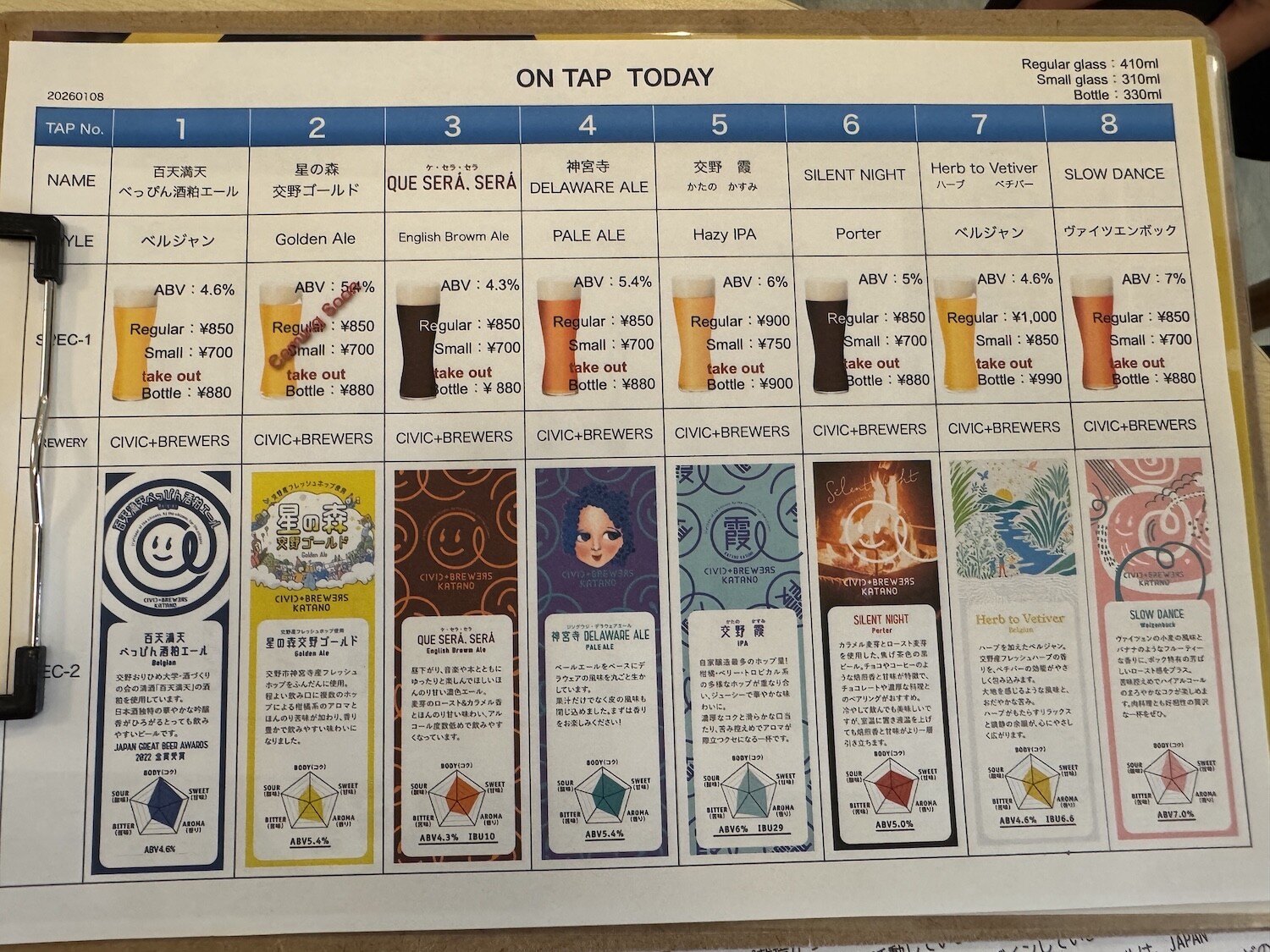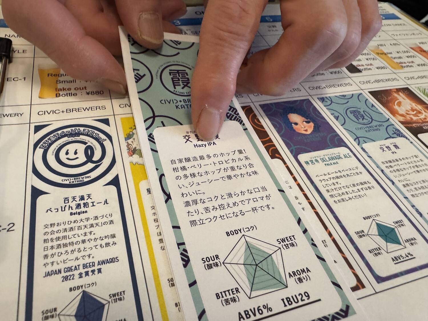 交野の霞、星降る里森のベルゴ、カタノフレッシュホップ、百天満天べっぴん酒粕エールなどなどそのネーミングもきらりと光るものがあるのですが、それぞれコクや香り、甘味や苦味なども違うとのこと。