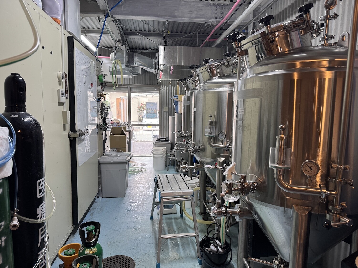 1階奥の醸造所は、まさにマイクロブルワリー!3つのタンクにはこれから産まれるビールたちがしっかり熟成中でした。