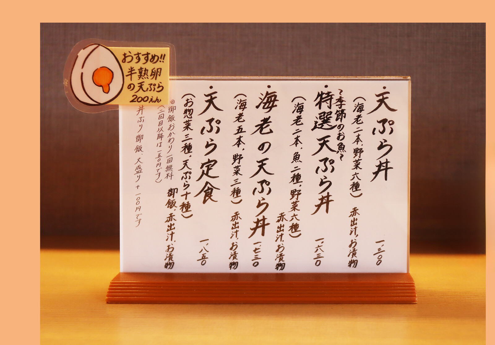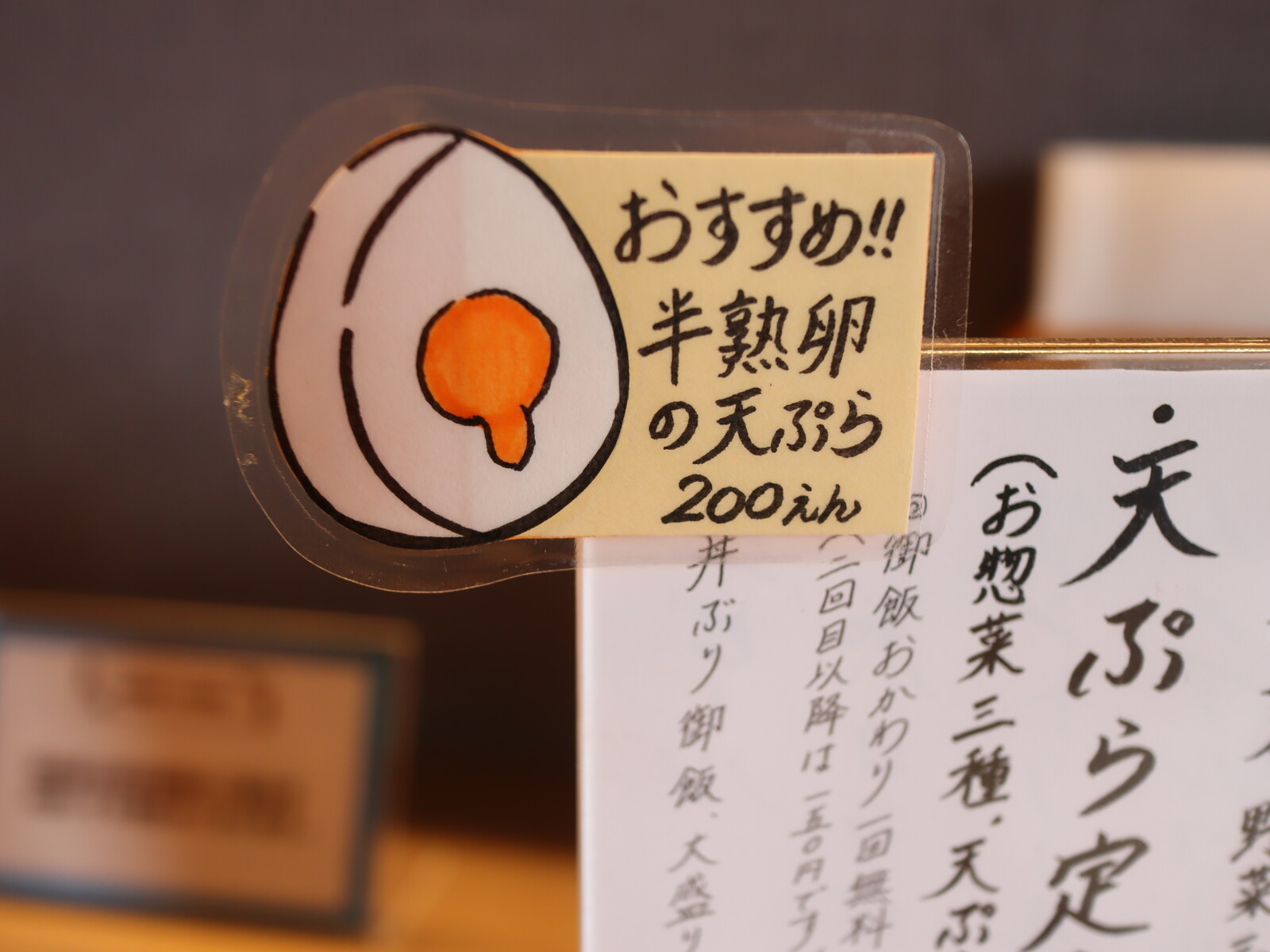 (夜のメニューに正式に「熟玉子天丼」という一品があるようです。ぜひご賞味を)