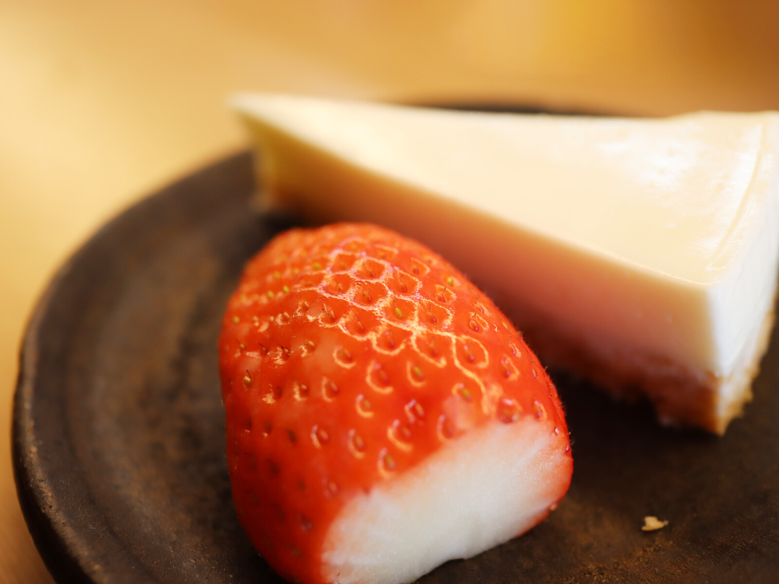 こちらは、デザートのチーズケーキと苺。