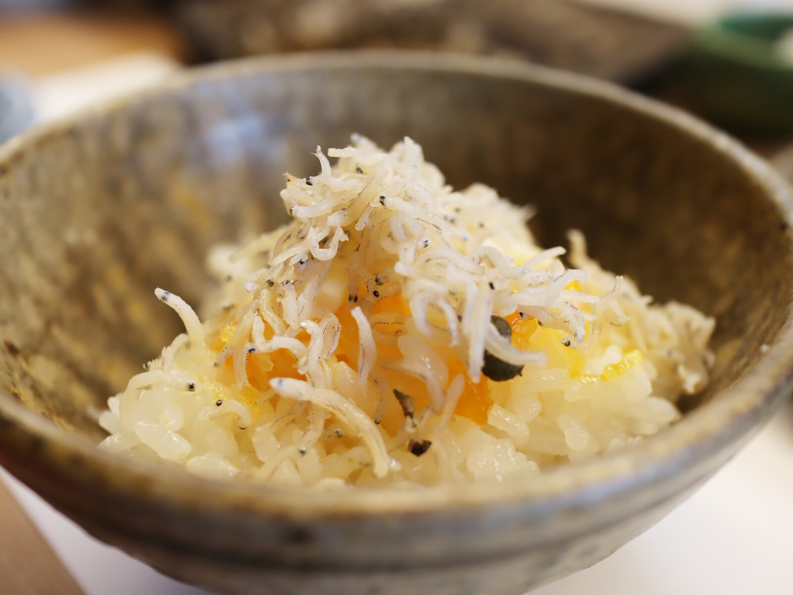 ごはんの上にのっけて、お惣菜の「自家製ちりめん山椒」をトッピングしたら、最高の組み合わせ!って感じでした。