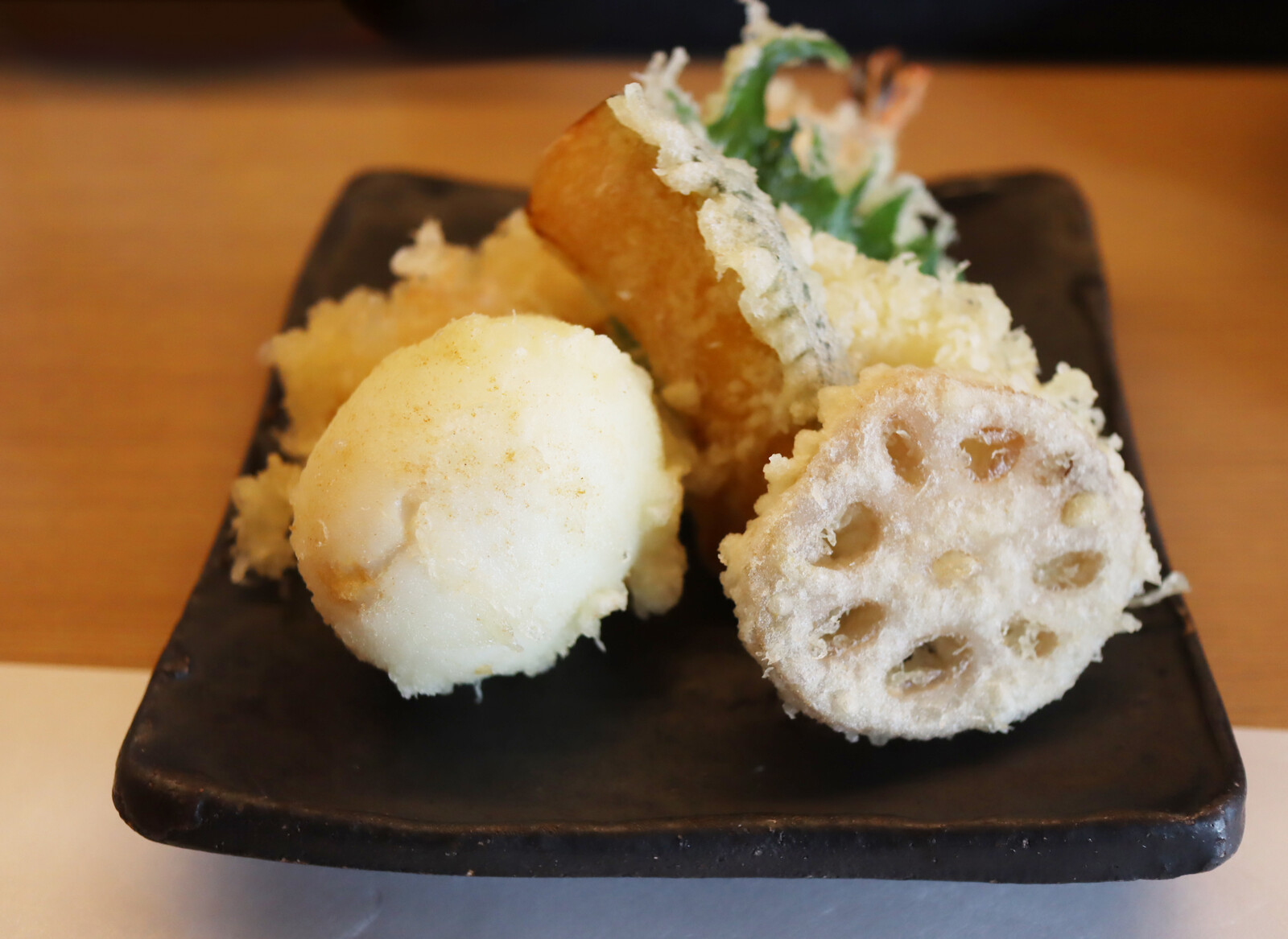 手前、向かって左にみえるのは「半熟たまご」の天ぷら。