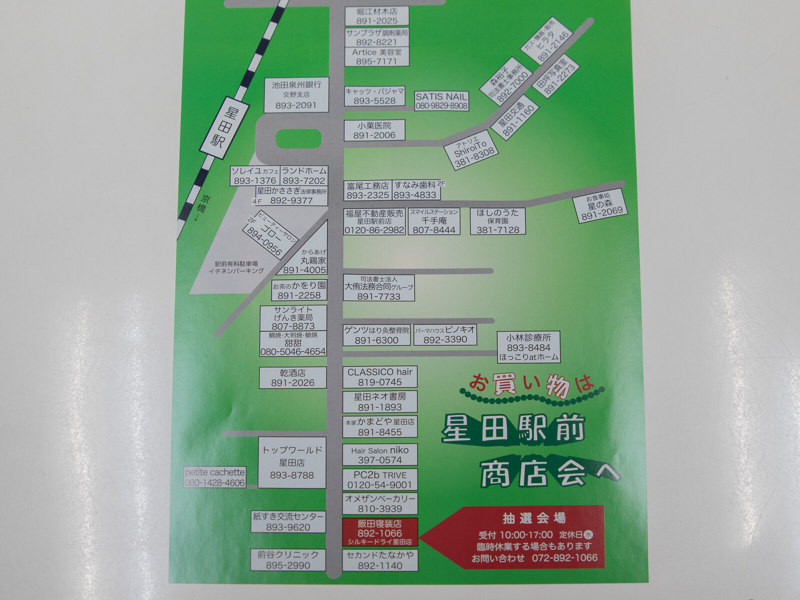 星田界隈の方々も、そうでない方々も駅前商店会でお買い物をしたら、抽選会場の飯田寝装店へレッツゴー!です