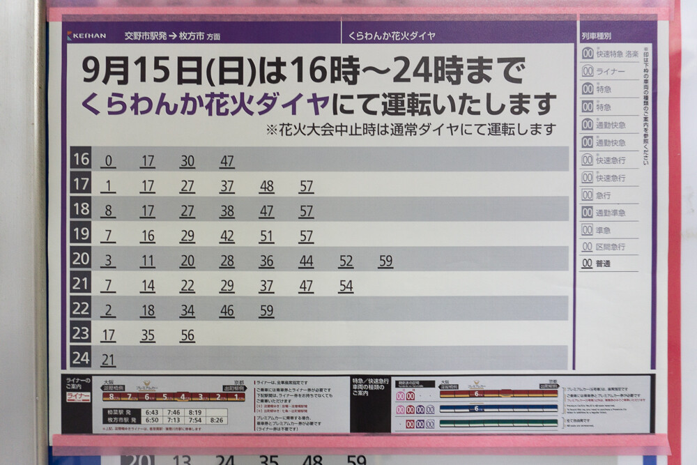 花火大会の終了後も京阪本線・交野線で臨時列車が運転されたようです。