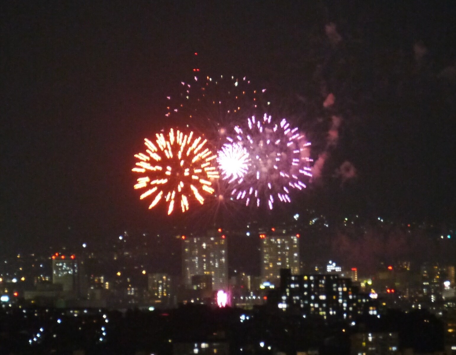 (交野市妙見東から撮影した花火)