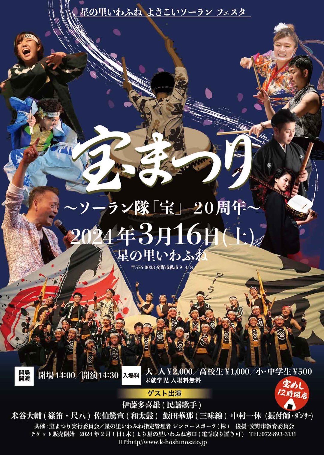 ソーラン隊『宝』が20周年!3月16日(土)に「宝まつり」星の里いわふねで開催。