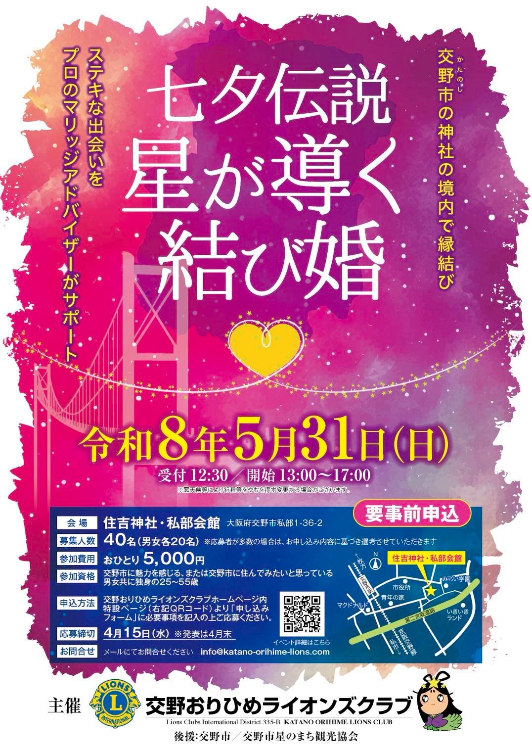 交野おりひめライオンズクラブが主催で婚活イベントを企画されているそうです。