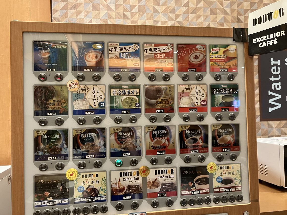 休憩コーナーには、ドリンクの自動販売機もありますので、お気に入りのドリンクと一緒にどうぞ!