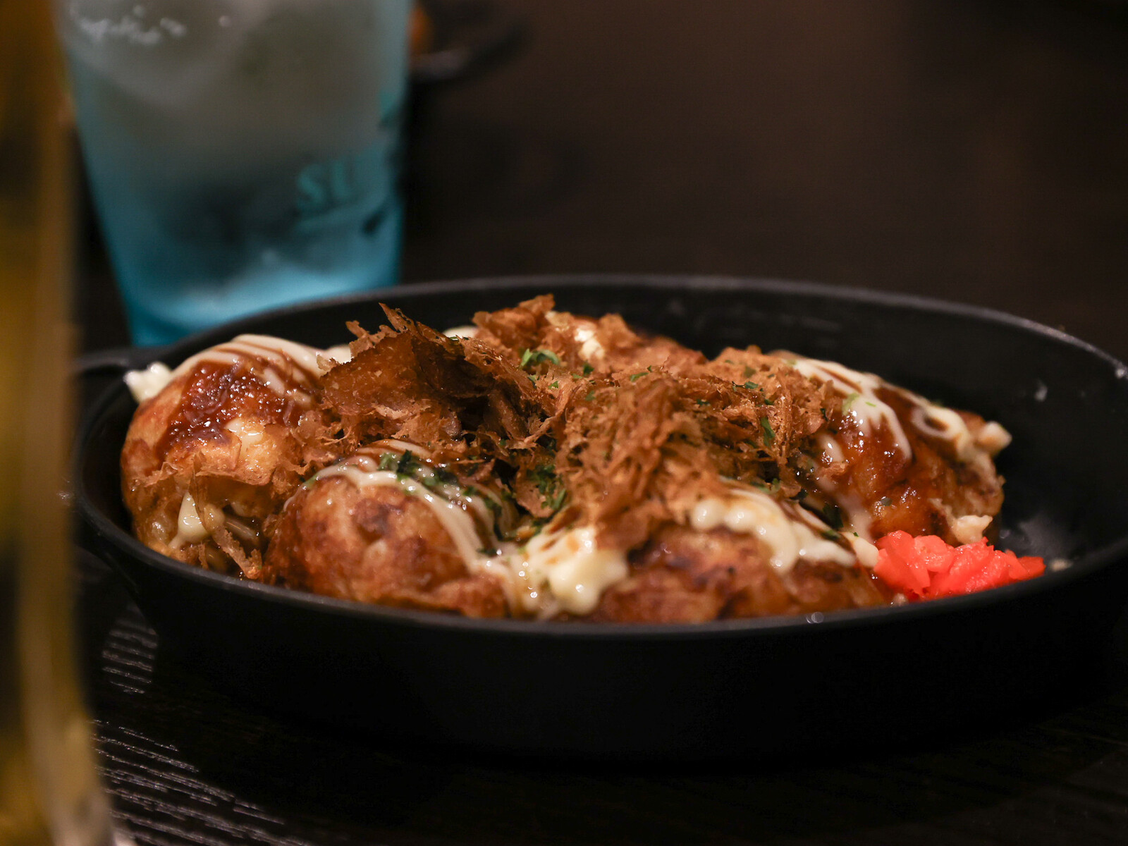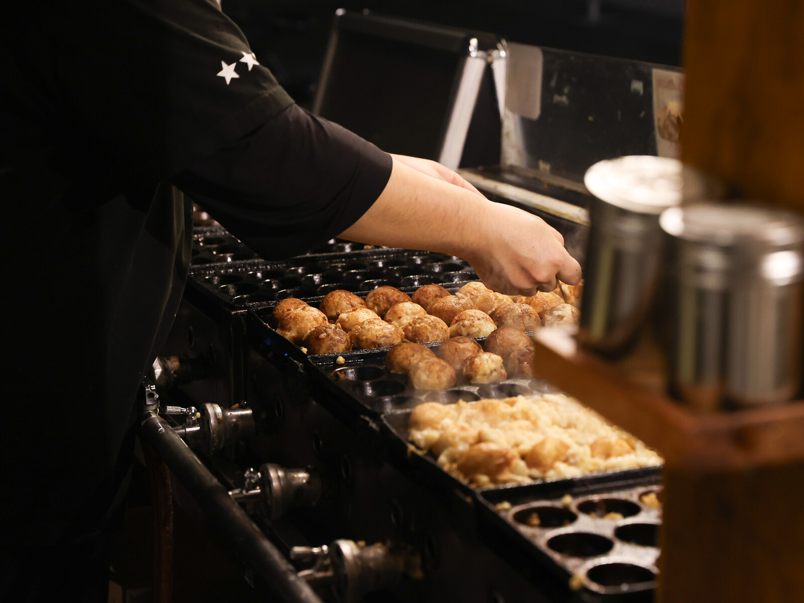 店舗の前でたこ焼きを焼いていて、吸い込まれるように寄ってしまうお店です。