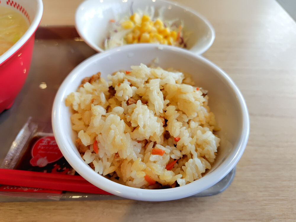 お米の価格が高いこのご時世に、ラーメン+五目ご飯+サラダが860円は嬉しい~!