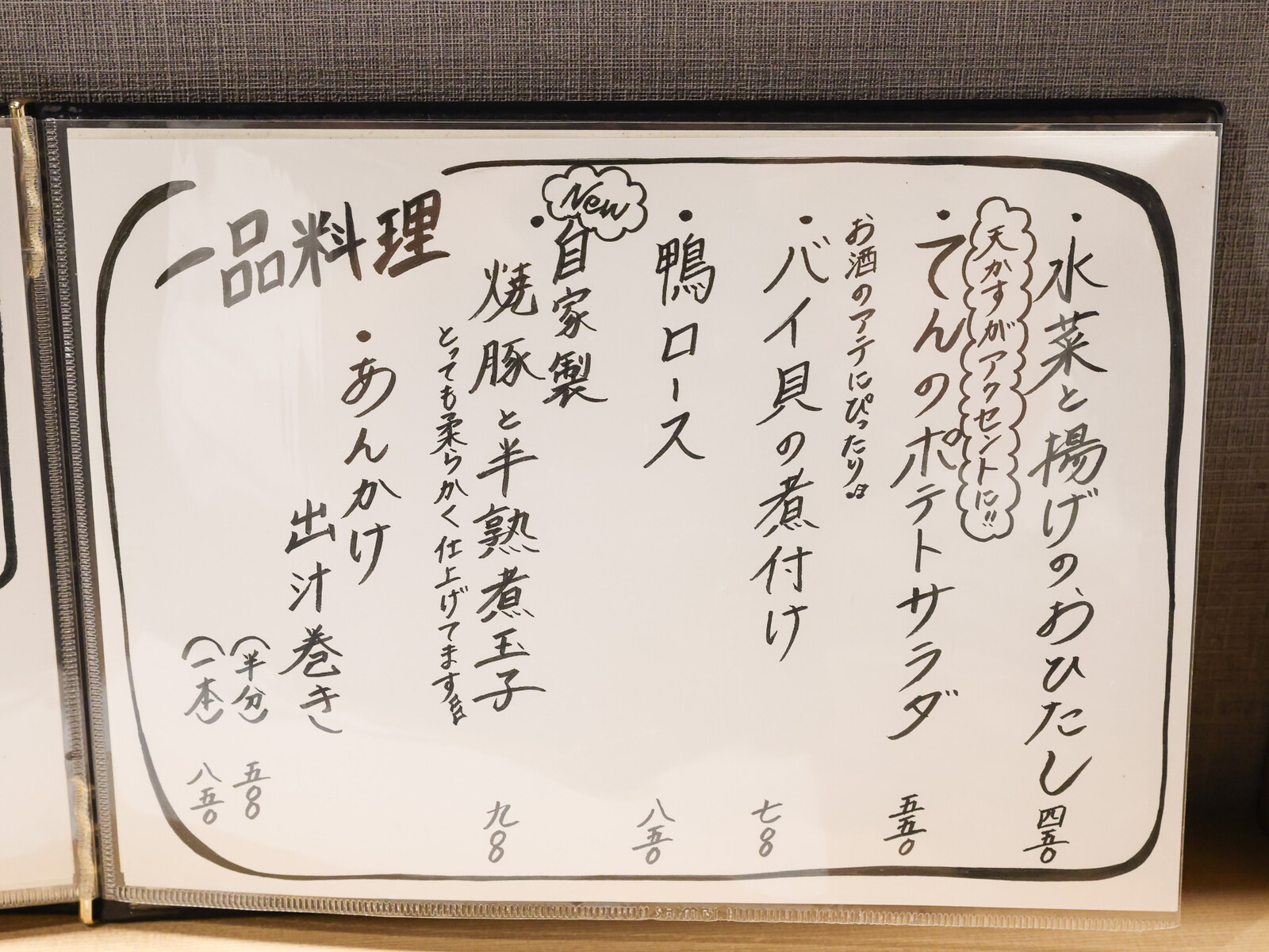 徳利とお猪口は、特製で、徳利には「てん」の文字が微かに見えていて、器にもこだわる店主の心意気が見えています。
