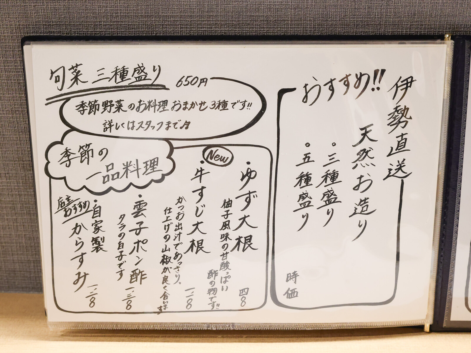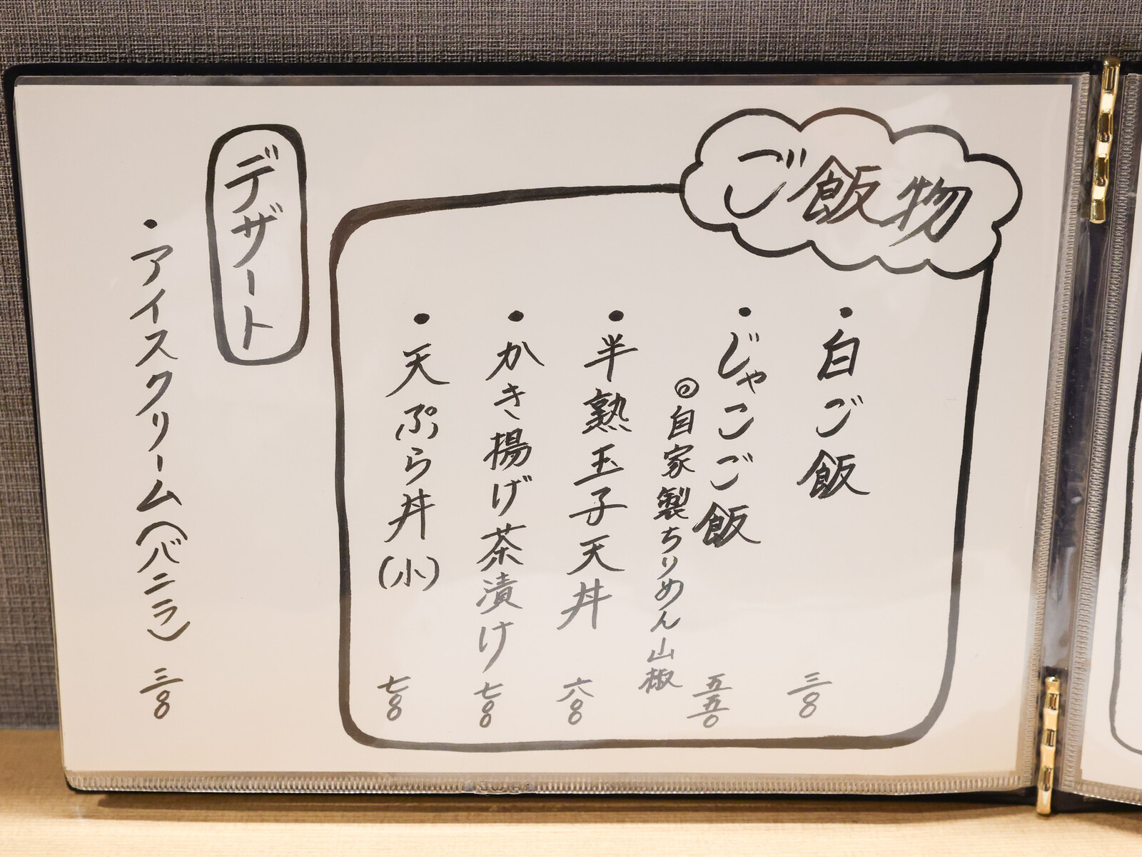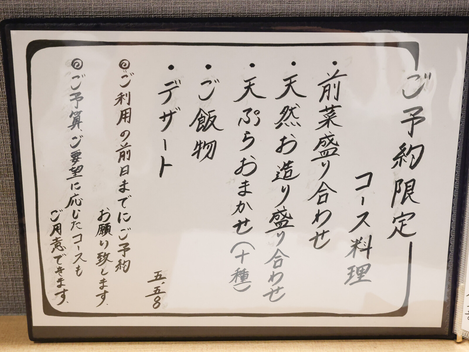どれも美味しいですが、今回ご紹介するのは、本日のおすすめの天ぷらにある「真珠貝とあおさのかき揚げ」