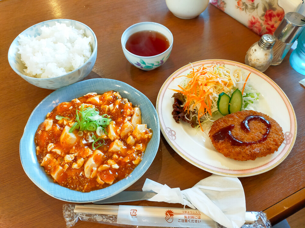 幾野の「Cafe Village」で日替わりランチ。『麻婆豆腐とコロッケ』を食べてきた