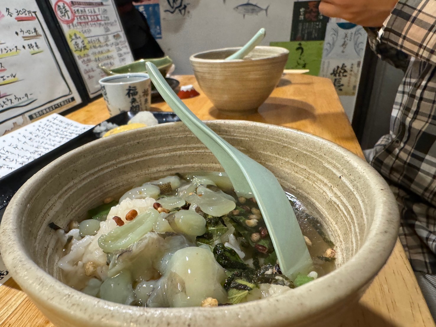 お茶漬けはウメ、蛸ワサ、海苔、シャケから選べます。