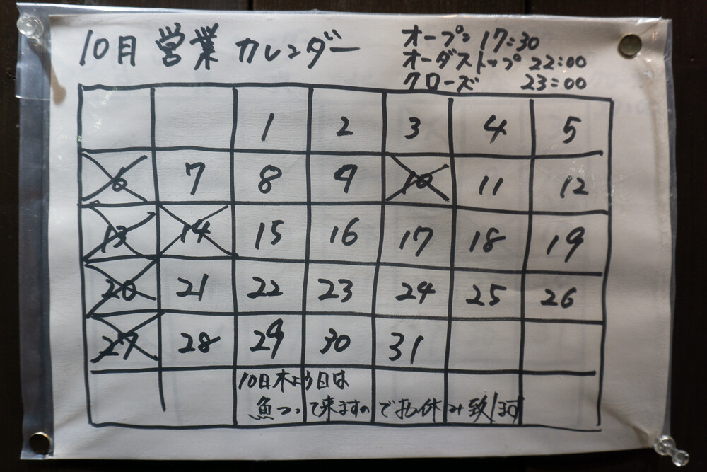 休業理由の「魚つって来ますのでお休み致します」というのがどことなくプロフェッショナル感があります。