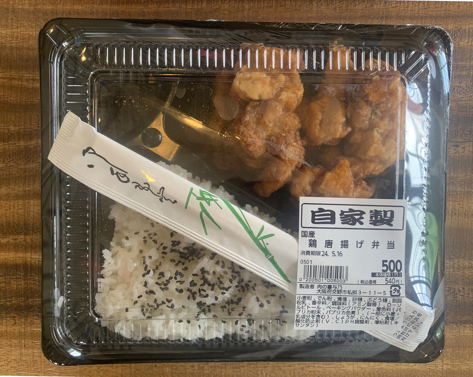 4月にオープンした肉の「喜与乃」の唐揚げ弁当。大きい唐揚げがたっぷり入ってる!