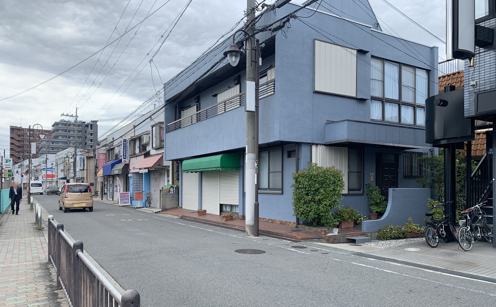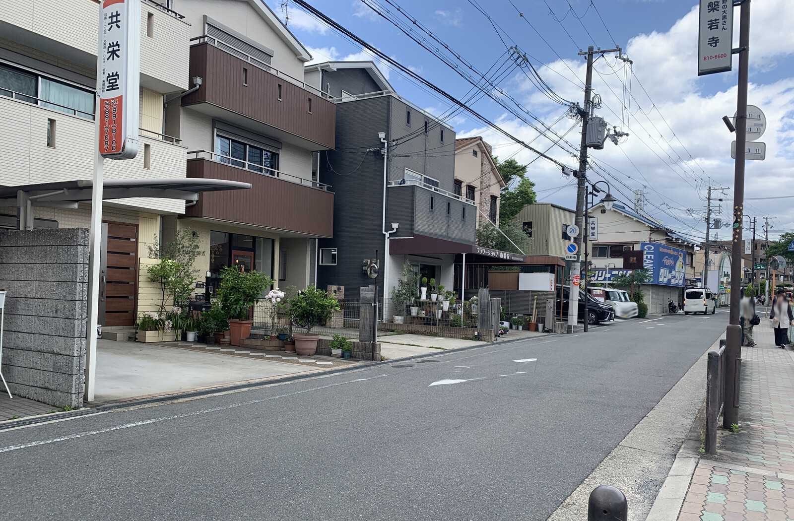 向かって右手に行けば、「スーパーラッキー」「交野市役所」などがあります。