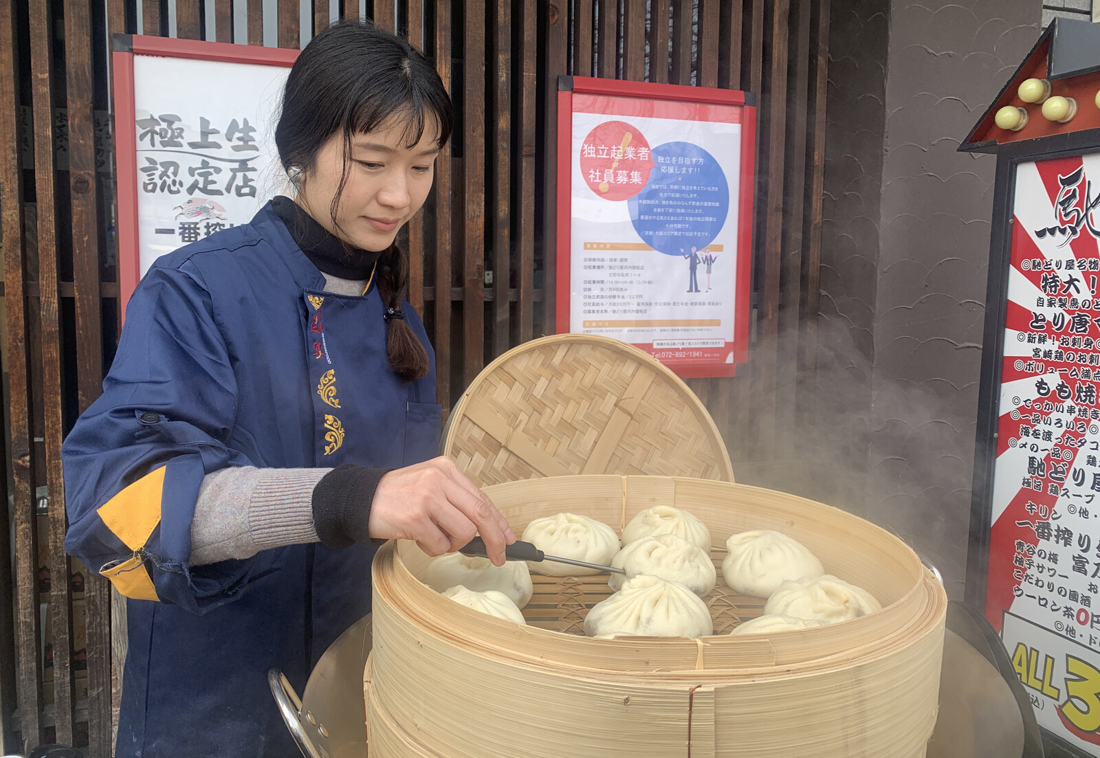 枚方の包子(バオズ)専門店「天天」の『豚の角煮包子』などが、河内磐船駅前で買える!